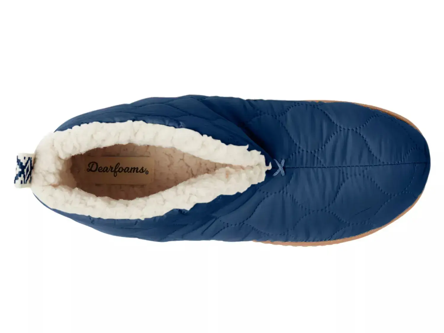 Ботинок Warm Upот Dearfoams с стеганым верхом и уютной подкладкой предлагает мягкое тепло и модный внешний вид. Классический вариант стиля 80-х, этот ботинок, который можно стирать в машине, разработан с использованием технологии DF Adapt для обеспечения комфорта без влаги и удобной петли для снятия с привлекательным рисунком для дополнительной привлекательности.