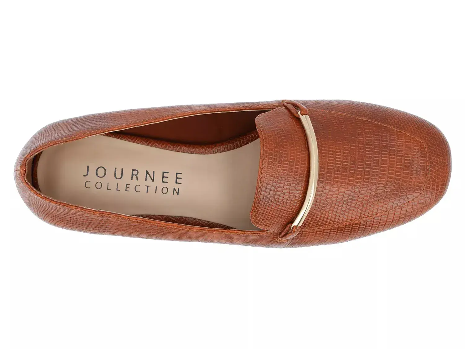 Переключайтесь между нарядной и повседневной одеждой с универсальными лоферами Journee Collection Wrenn, когда угодно. Аппаратные детали добавляют блестящий акцент к роскошному виду этих слепонов, в то время как Стелька из Tru Comfort Foam обеспечивает комфорт на протяжении всего дня.