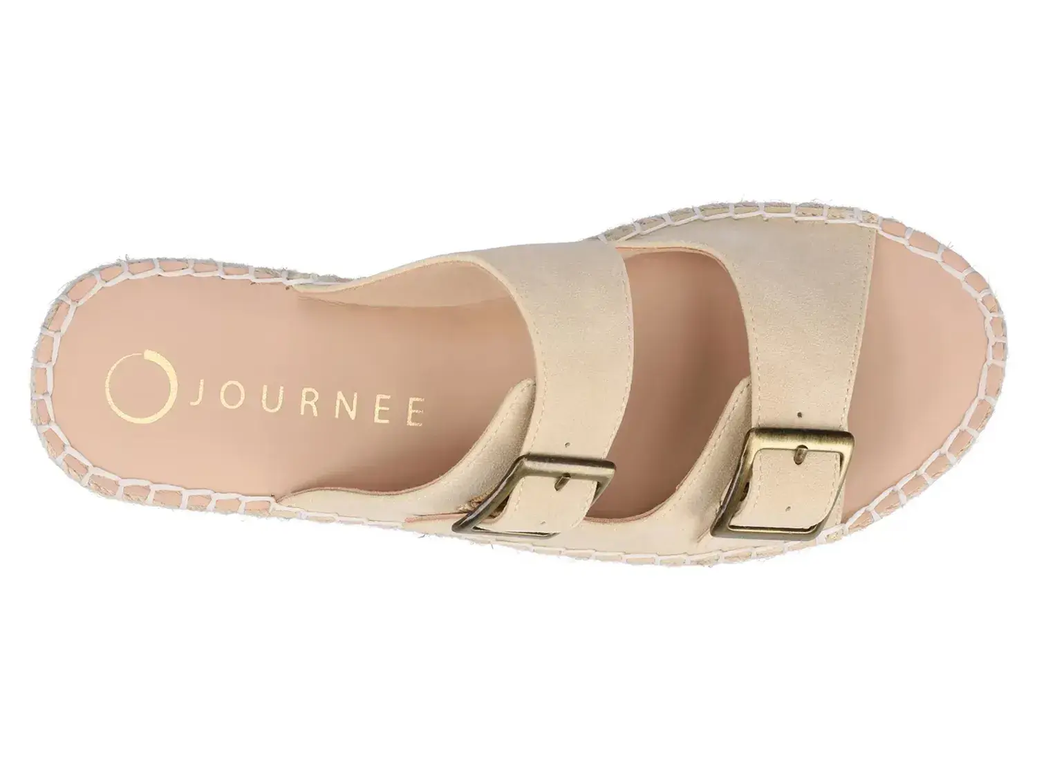 Добавьте универсальности в свой гардероб с сандалиями Tresah от Journee. Классический силуэт отлично сочетается с любимыми нарядами, а амортизирующая подошва поддерживает ваши шаги. Детали из эспадрильи придают вашему образу богемный стиль.