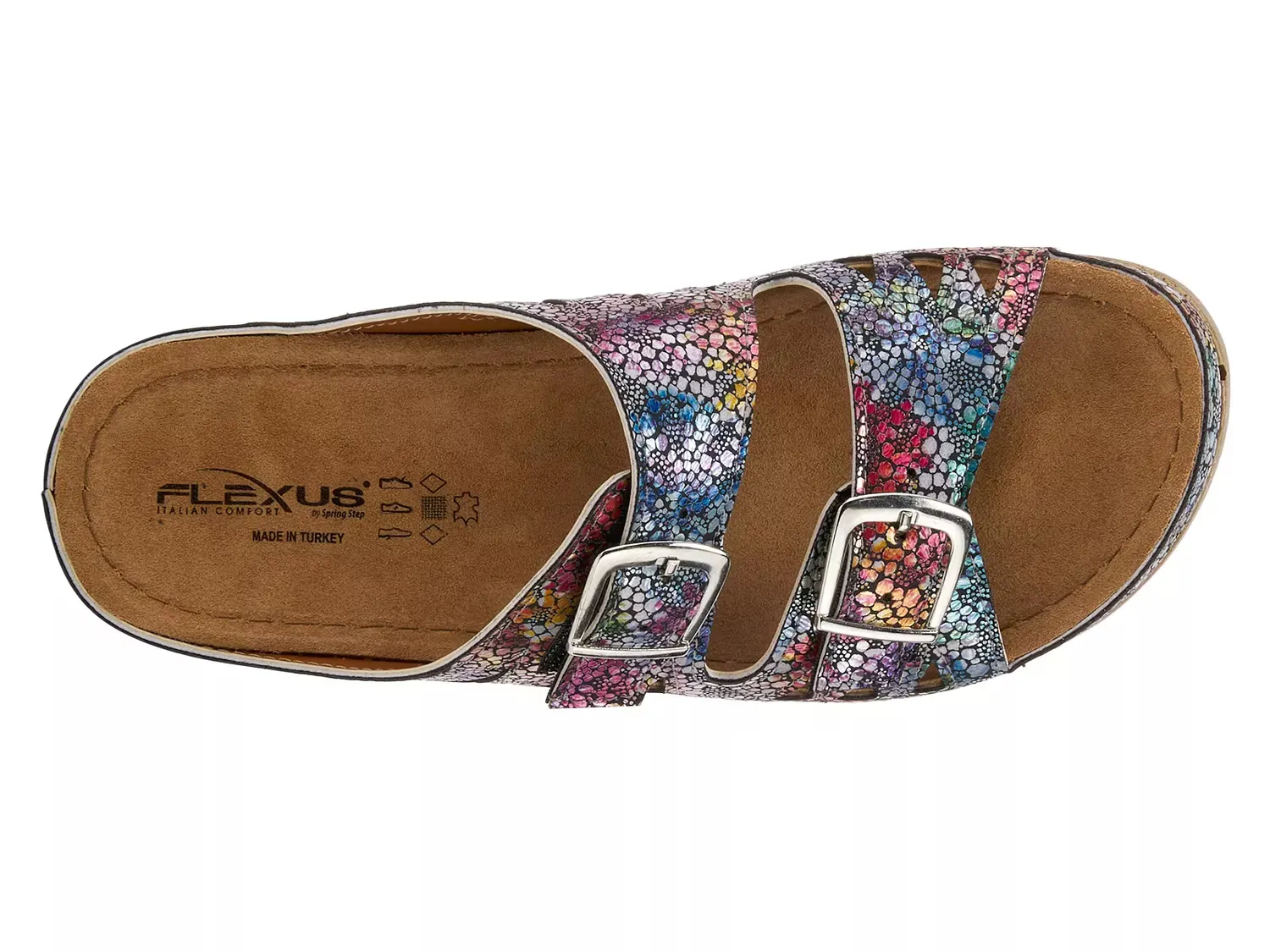 Вам понравятся летние образы и сюрреалистичный комфорт шлепанцев Flexus Delphis. Эти сандалии на платформе с привлекательными принтами созданы с застежками на липучках для удобной посадки и эффектными металлическими пряжками для аккуратного вида. Прочные боковые швы и мягкая стелька обеспечивают невероятный комфорт.