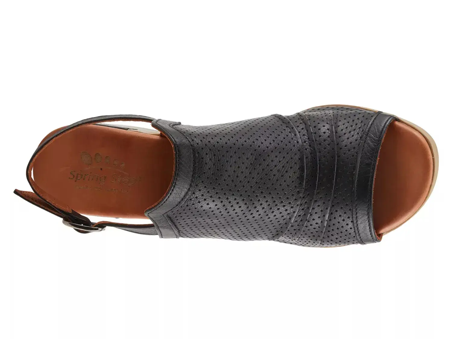 Сандалии Noctium от Spring Step идеально подходят для любого сезона. Перфорированная кожаная верхняя часть обеспечивает воздухопроницаемость и комфорт, а утолщенный каблук элегантно поднимает этот силуэт.