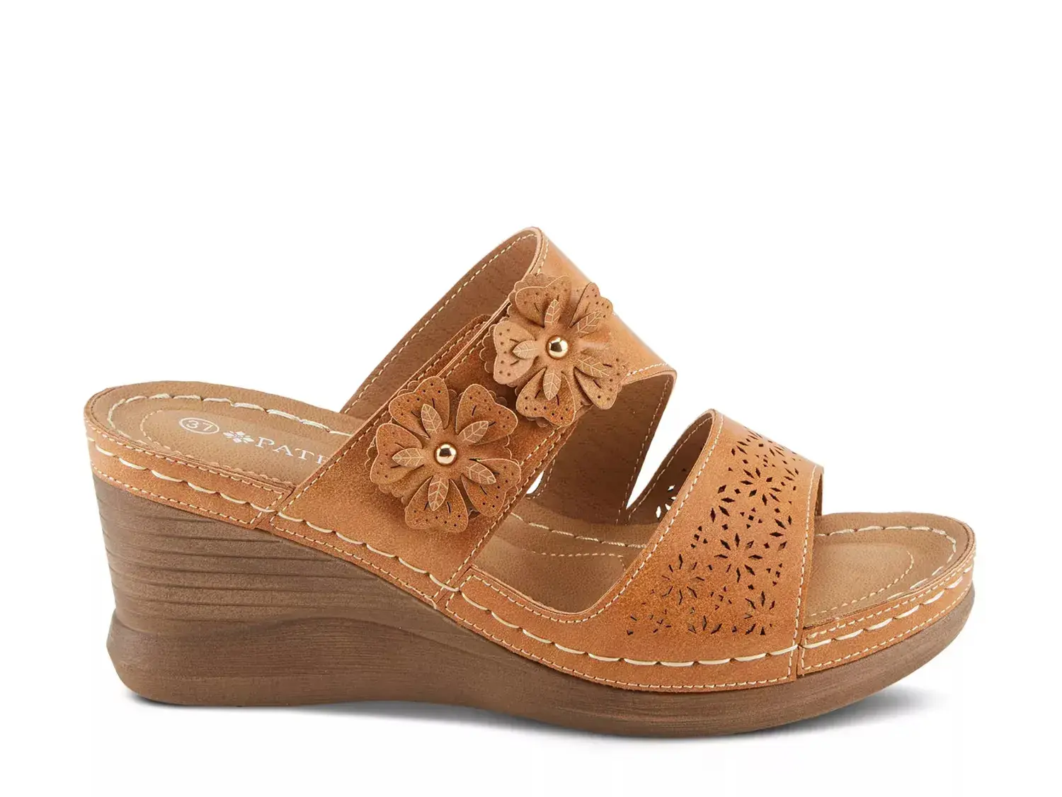 Принесите летние вибрации в свой повседневный стиль с сабо на танкетке Lolly от Patrizia. Эта платформа-сабо имеет лазерно вырезанный цветочный узор и 3D-цветы с гладкими заклепками для дополнительного притяжения. Благодаря ремешку на липучке, вы можете добиться плотной посадки для комфортной ходьбы.