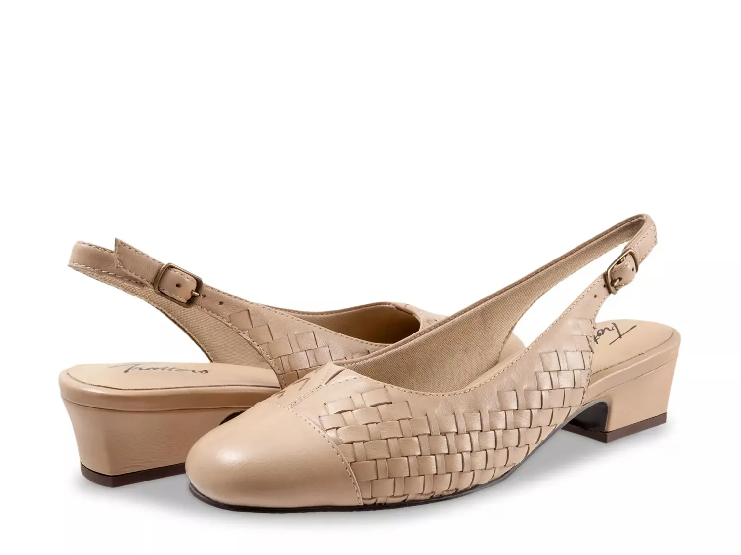 Помпа Dea от Trotters отлично сочетается с рабочей одеждой, повседневными нарядами и всем, что между ними. Тканевые детали по бокам и изящный ремешок на задней части придают этому аксесуару женственности, а его завершает скромный блок-каблук.