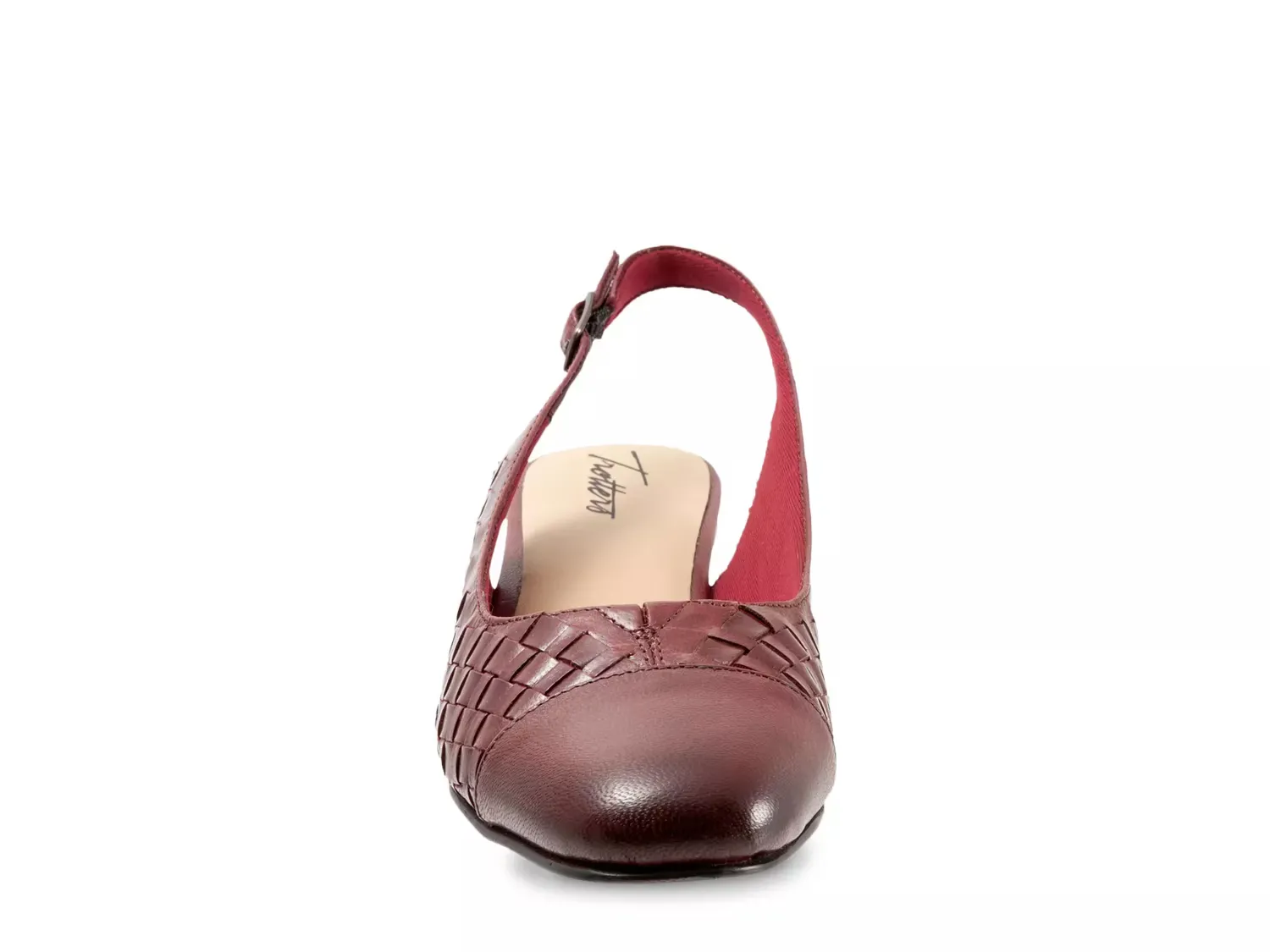 Помпа Dea от Trotters отлично сочетается с рабочей одеждой, повседневными нарядами и всем, что между ними. Тканевые детали по бокам и изящный ремешок на задней части придают этому аксесуару женственности, а его завершает скромный блок-каблук.