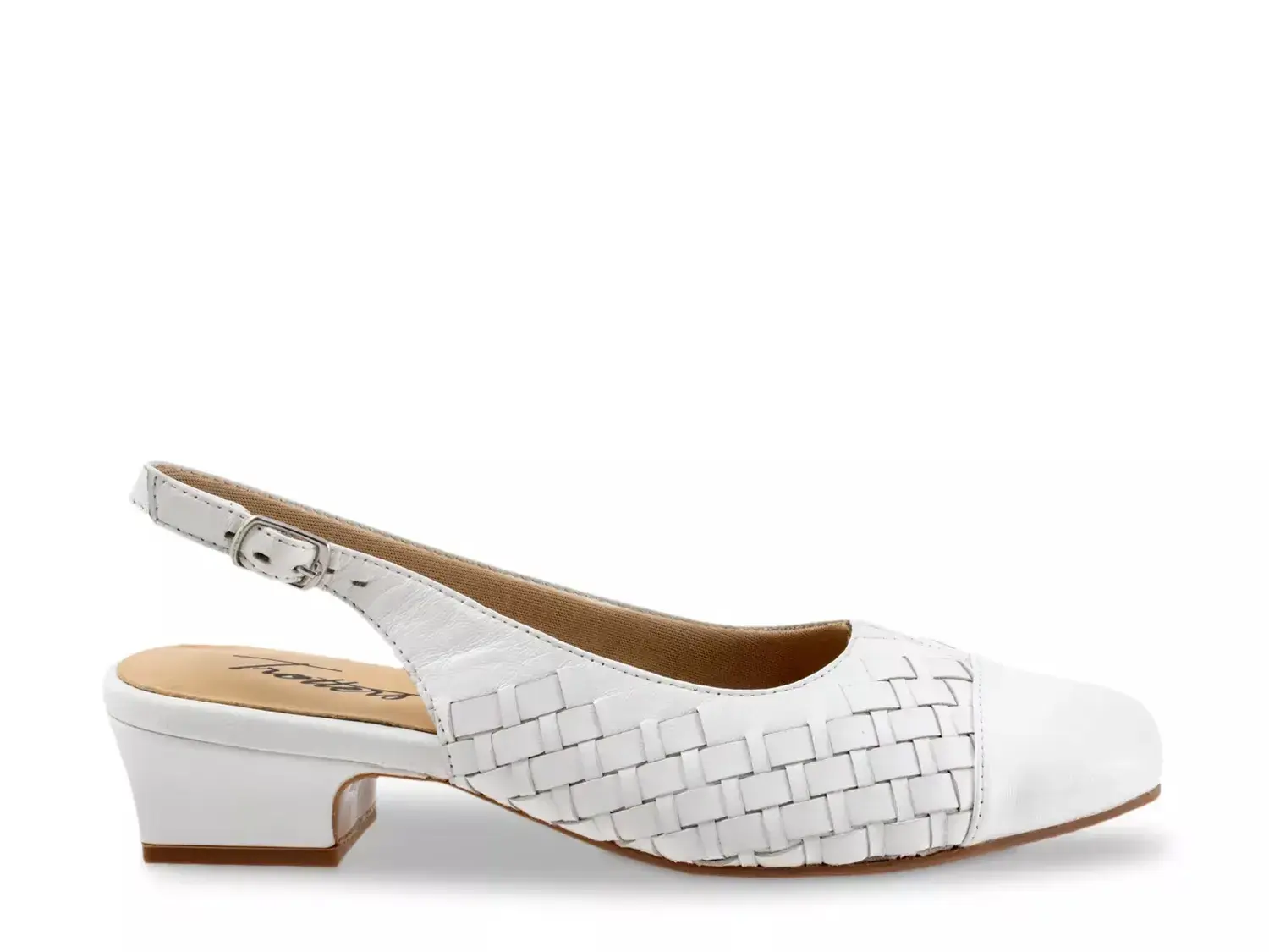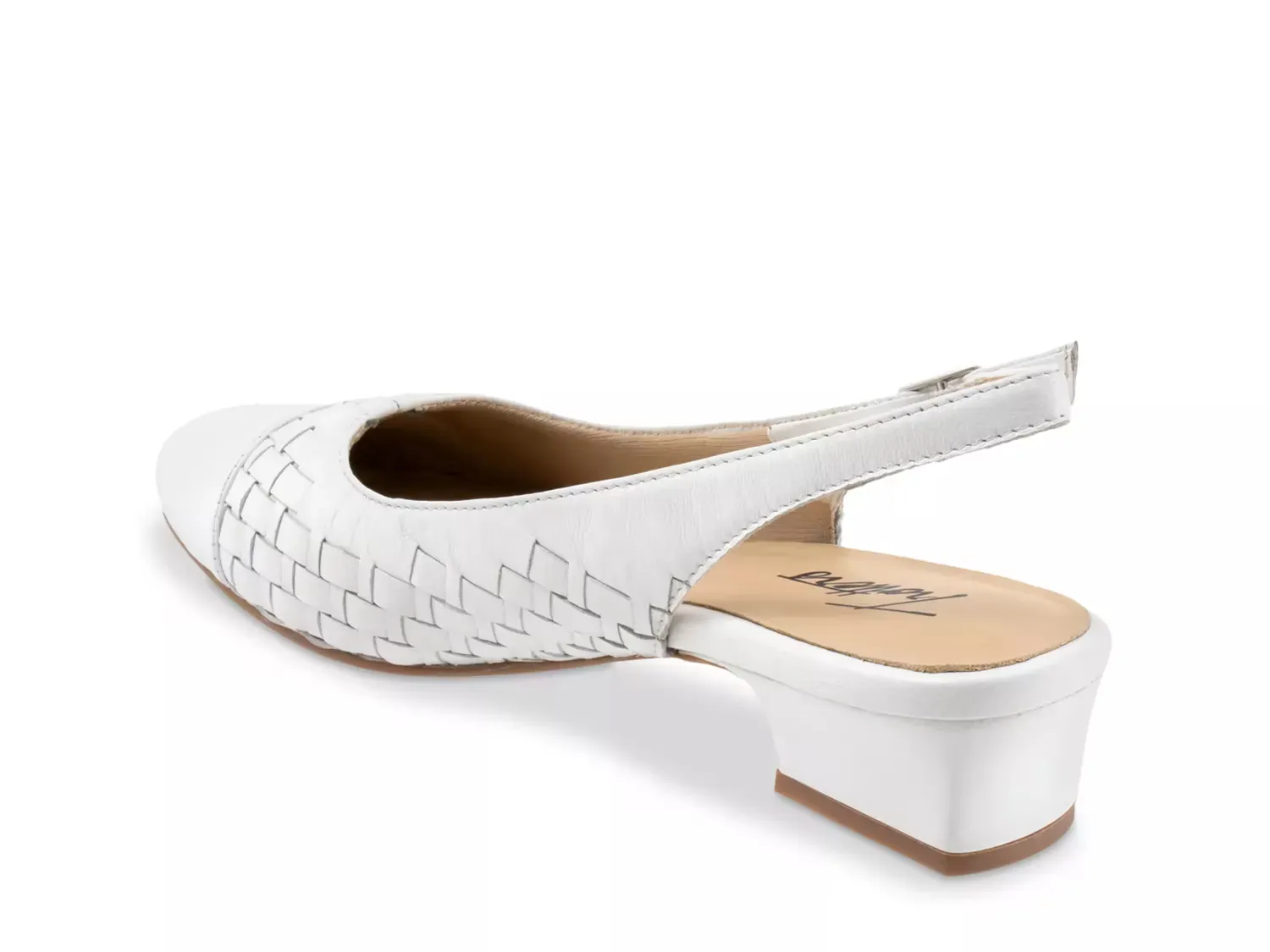 Помпа Dea от Trotters отлично сочетается с рабочей одеждой, повседневными нарядами и всем, что между ними. Тканевые детали по бокам и изящный ремешок на задней части придают этому аксесуару женственности, а его завершает скромный блок-каблук.