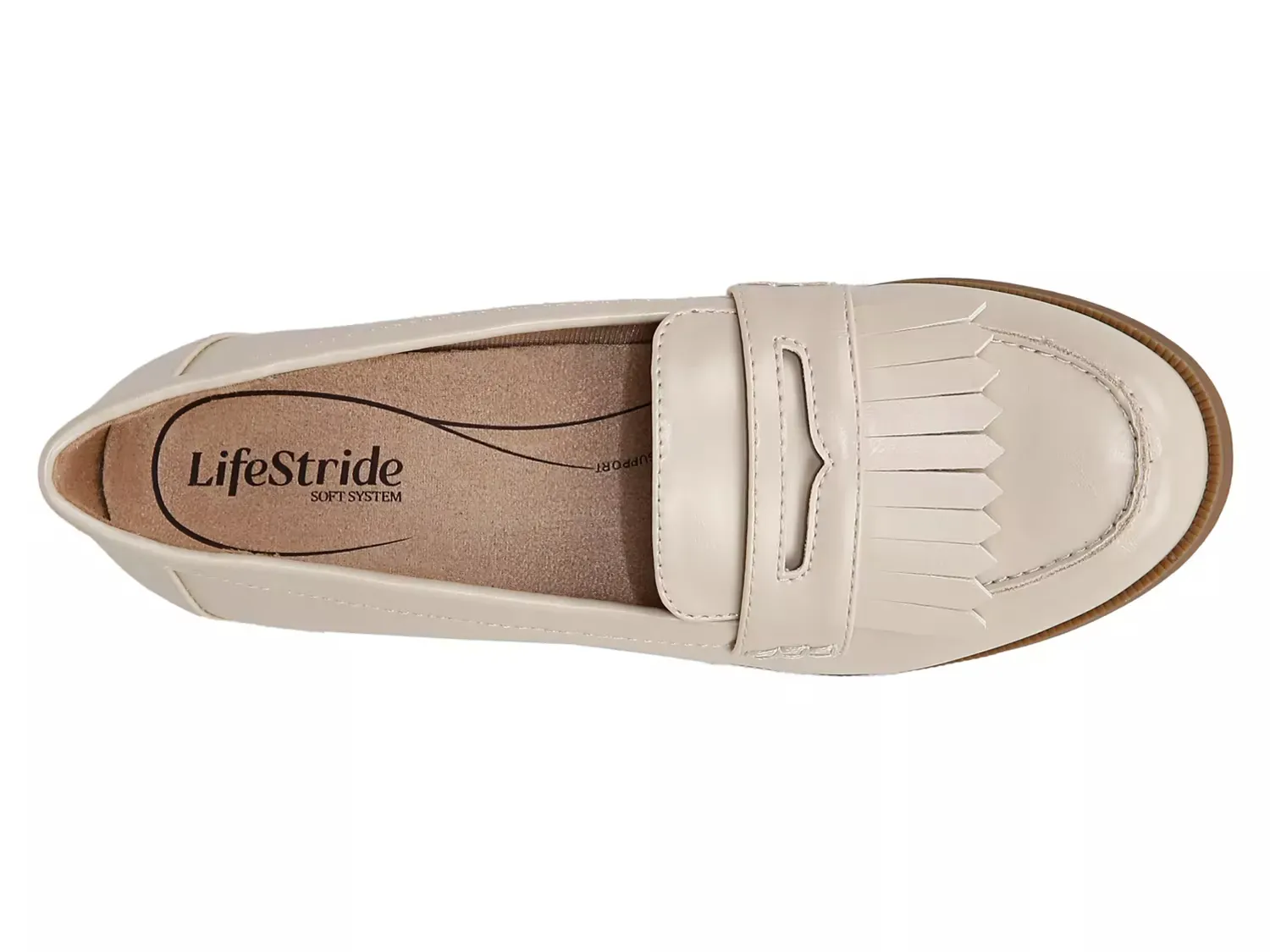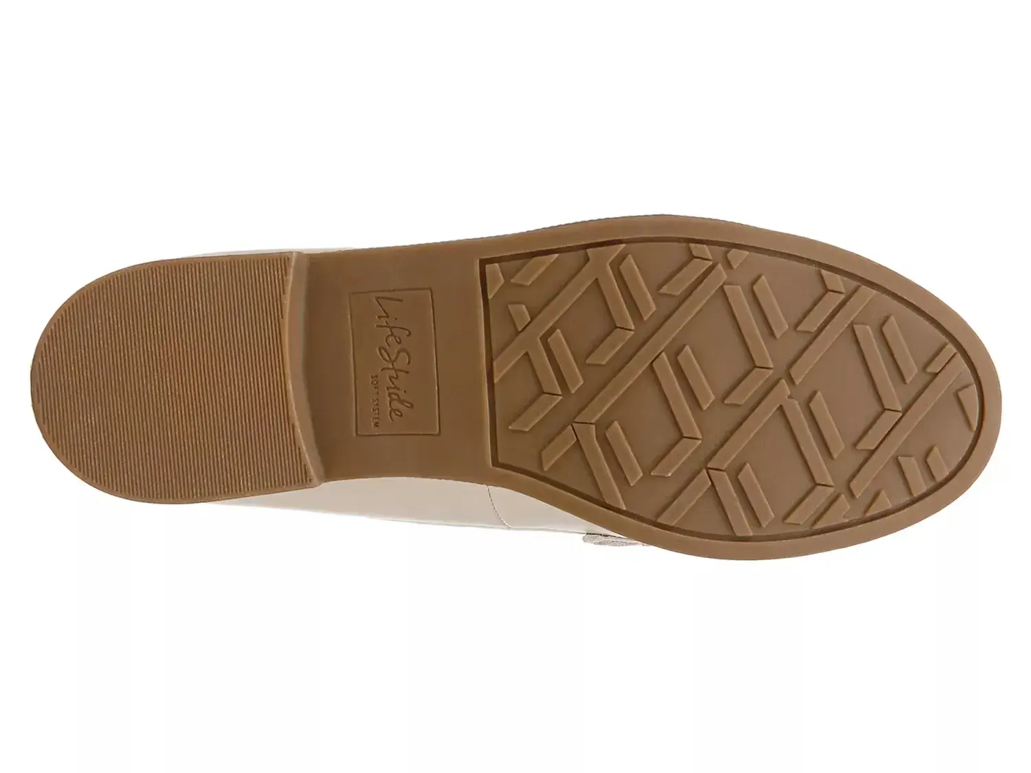 Освежите свой профессиональный вид с лоферами Santana от LifeStride. Фактурная окантовка, акцент с заклепкой и мока носок делают эту модель утонченной, в то время как многослойный блокированный каблук и амортизирующая стелька Soft System обеспечивают поддержку даже после завершения рабочего дня.