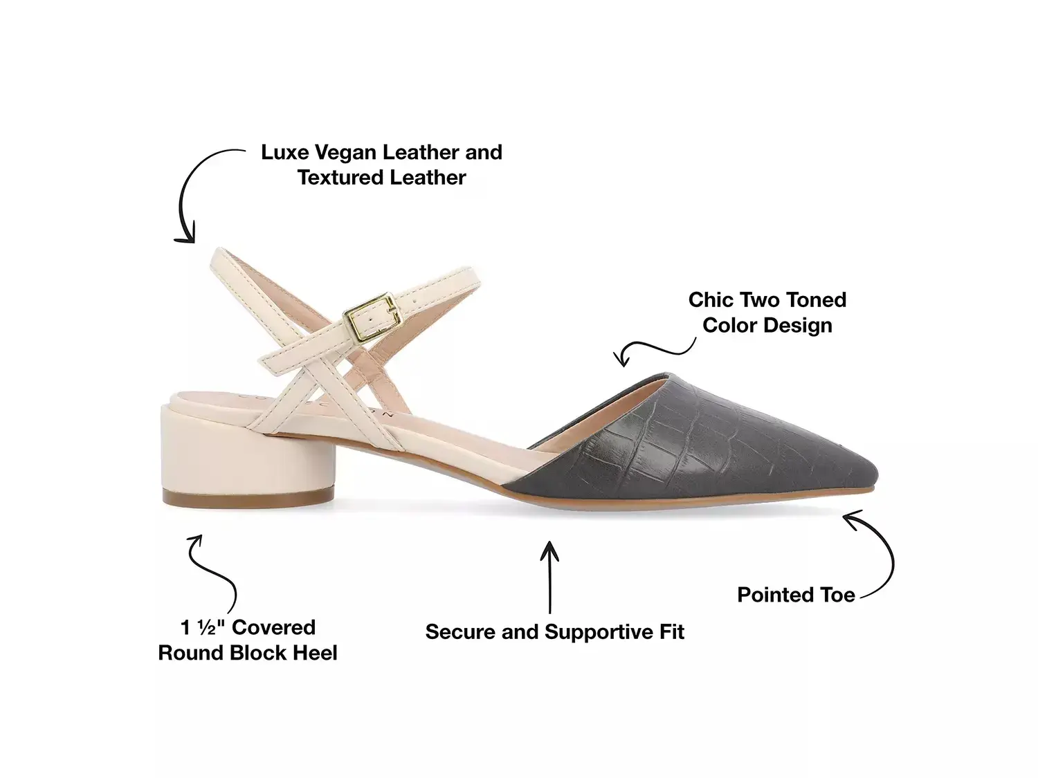 Украдите внимание, надев насосы Brynn от коллекции Journee. Цветной силуэт с тонким крокодиловым узором, классический尖尖 носок и блокированный каблук придают этому насосам на щиколотке модный вид.
