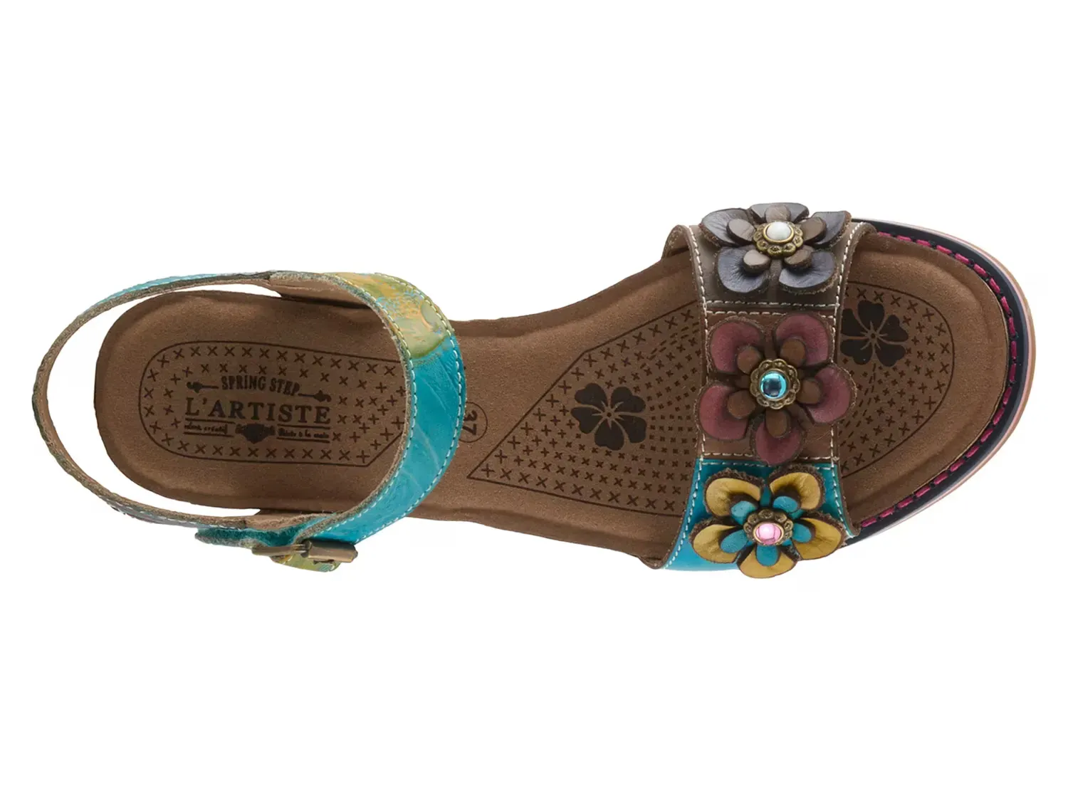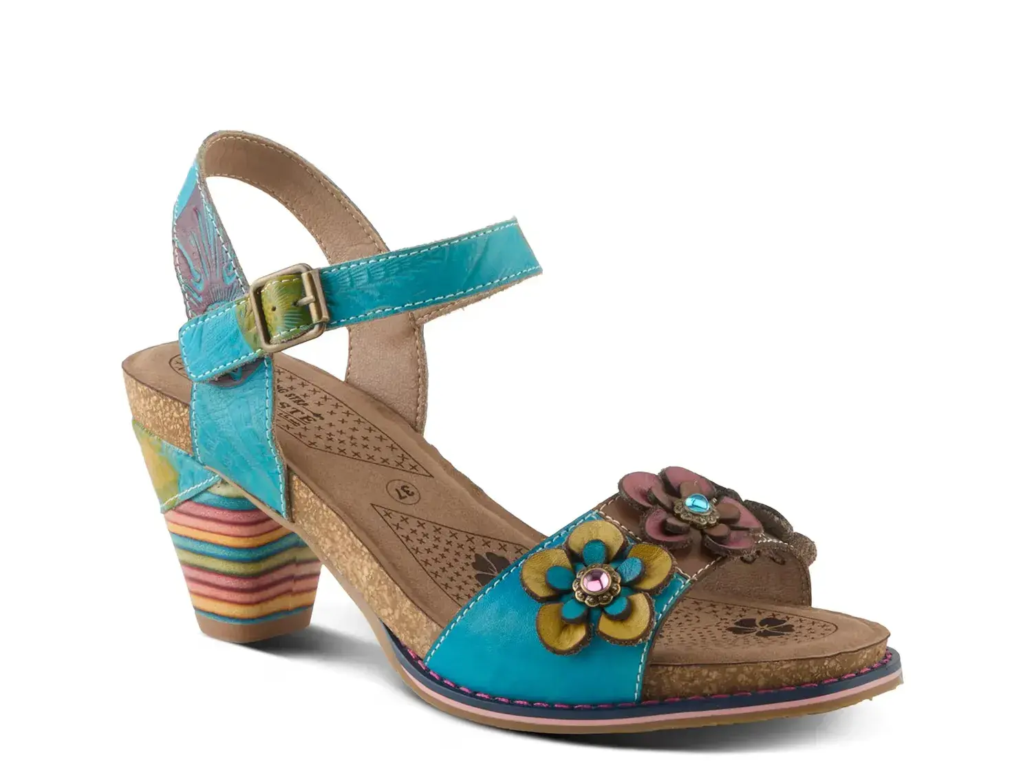 Сандалии Bluesky от L'Artiste добавляют креативный штрих к комфортному стилю. Верх из кожи украшен ручной росписью и двуцветными цветочными аппликациями, которые придают этот сандалям с застежкой 'липучка' художественное очарование. Корковая промежуточная подошва и мягкая стелька обеспечивают комфорт вашим ногам в течение всего дня, в то время как яркий каблук поднимает общий вид.
