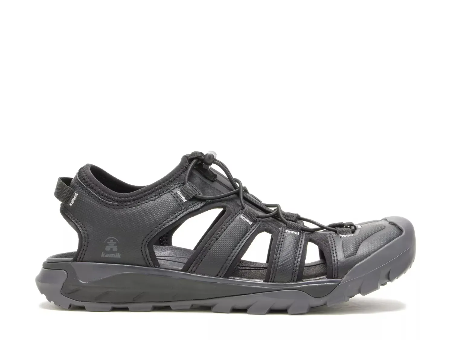 Приключения на свежем воздухе могут быть комфортными в сандалиях Kamik Syros. Спортивные сандалии имеют водонепроницаемую подкладку для защиты от погодных условий и технологию H20 Grip Lock, которая обеспечивает дополнительное сцепление на мокрых поверхностях. Обработка Cleansport NXT, свободная от токсинов, поддерживает свежесть ваших ног, в то время как подошва PACE Grip H20 обеспечивает улучшенное сцепление в мокрых условиях.