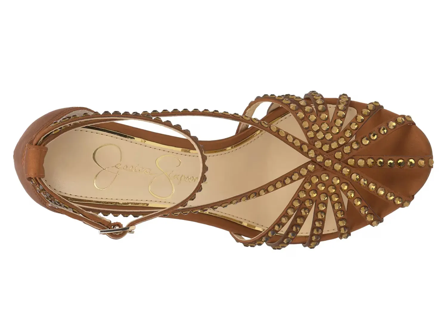 Элегантность в каждом шаге, когда вы носите туфли на каблуках Jittale от Джессики Симпсон. Эта стильная пара украшена стразами, имеет ремешки и изящный тонкий каблук.