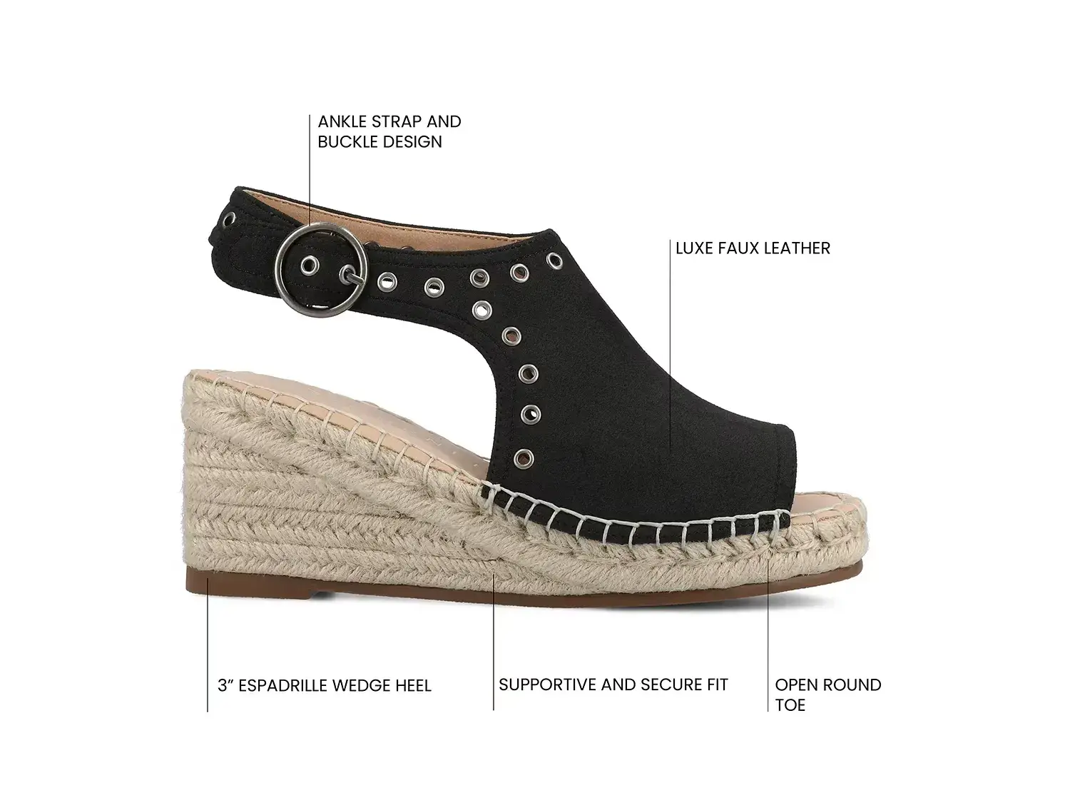 Теплая погода не за горами, так что подготовьте свой шкаф с босоножками на танкетке Journee Crisie. Декор в стиле эспадриль и металлические заклепки добавляют яркий акцент этой паре, в то время как мягкая подошва обеспечивает поддержку.