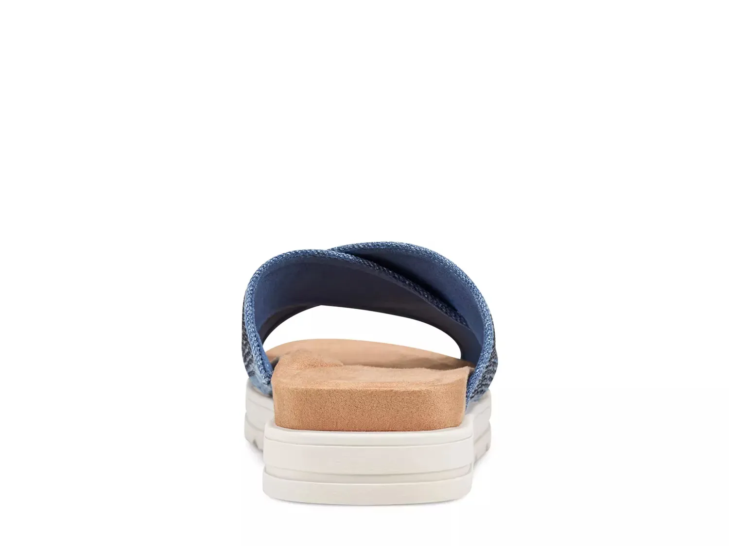 Сандалии на платформе Stacy от Easy Spirit оформлены украшенными перекрестными ремешками, которые добавляют вашему образу гламурный штрих. Эти сандалии-слиперы имеют толстую стельку и поддержку свода стопы, чтобы ваши ноги были в комфорте на протяжении всего дня.
