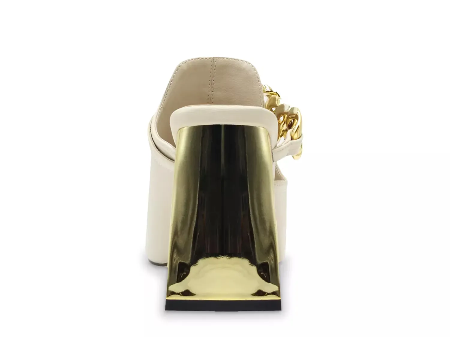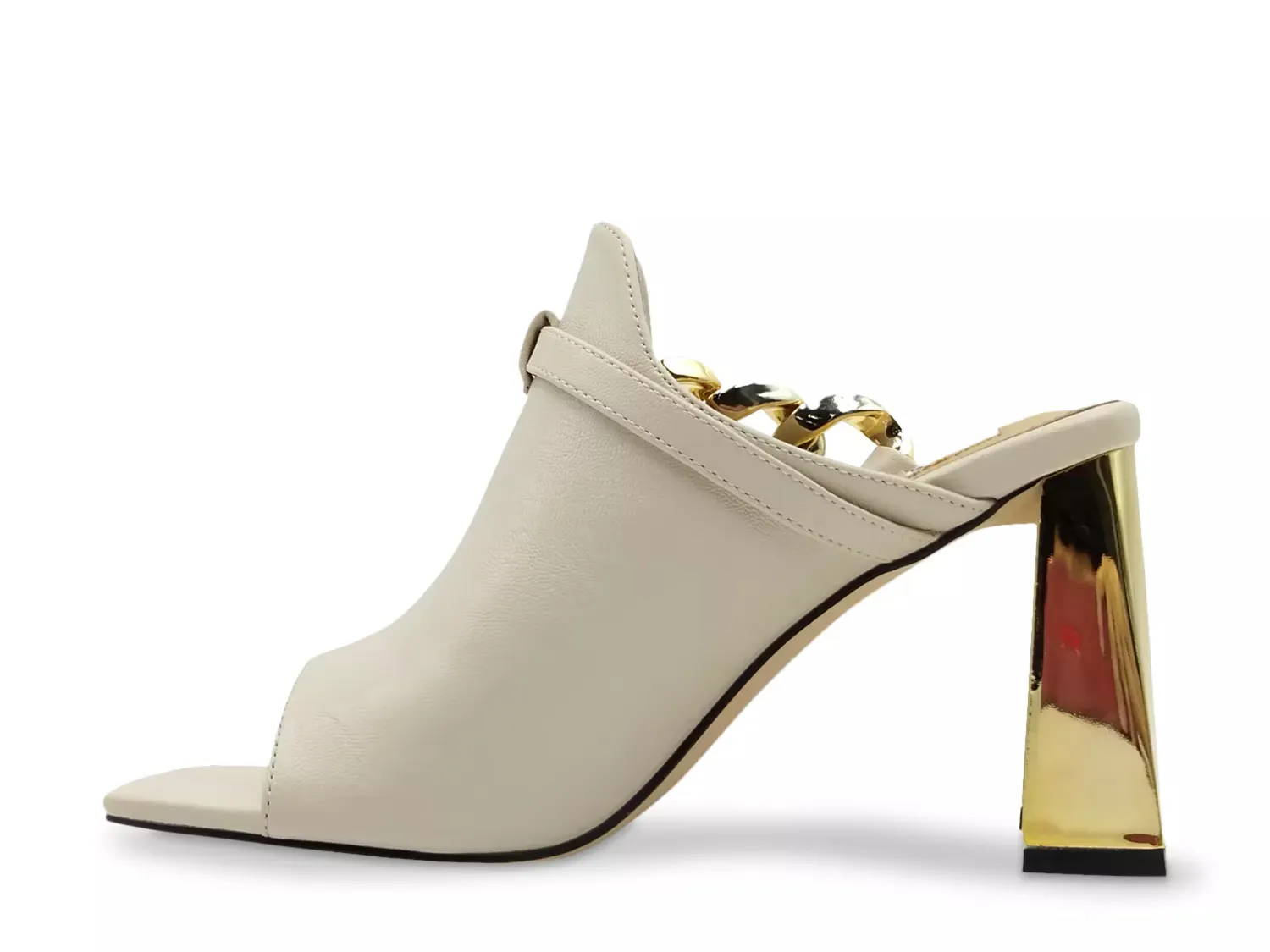 Это загадка вокруг ваших ног, когда вы надели сандалии Ninety Union Ryder. Цепной элемент и яркий металлический каблук привлекают всеобщее внимание к этому слайду с квадратным носком.