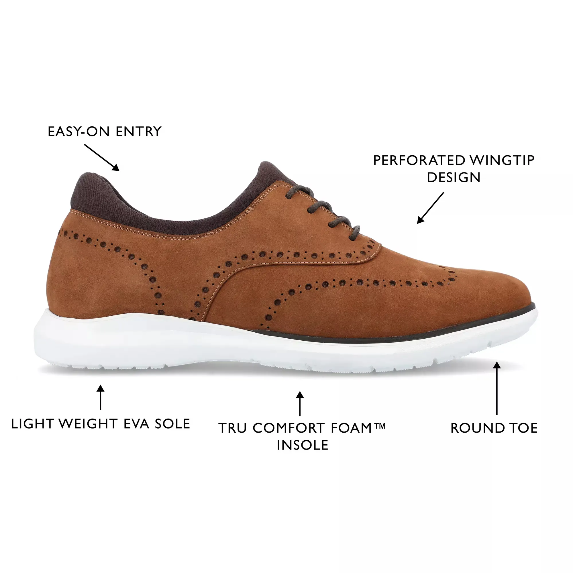 Освежите свой утонченный образ с оксфорда Bronson от Thomas & Vine. Изготовленный из натуральной кожи с мягким воротником, стелькой Tru Comfort Foam и подошвой ExtraLight, этот дерби оксфорд – то, что вам нужно, чтобы выглядеть элегантно.