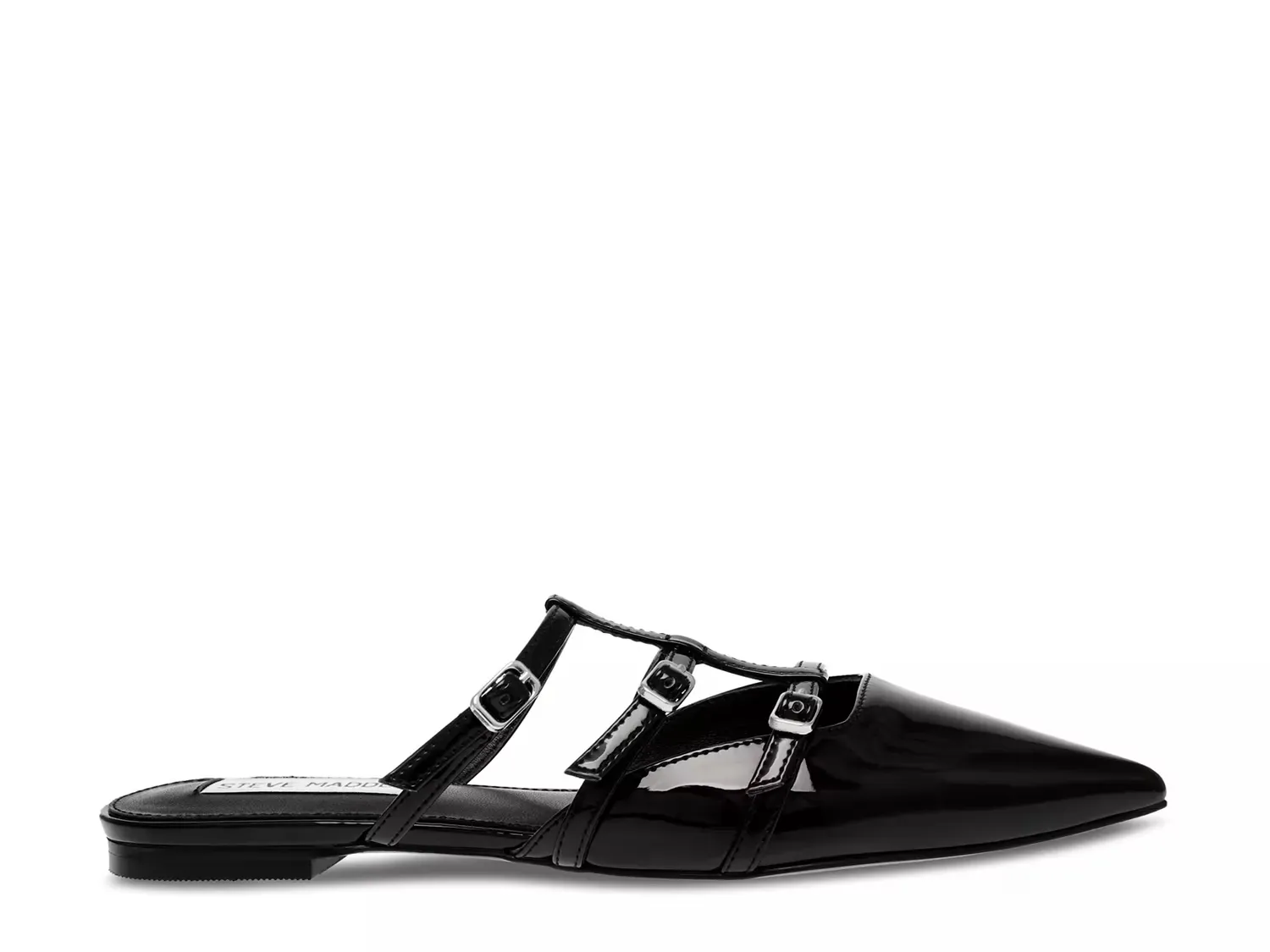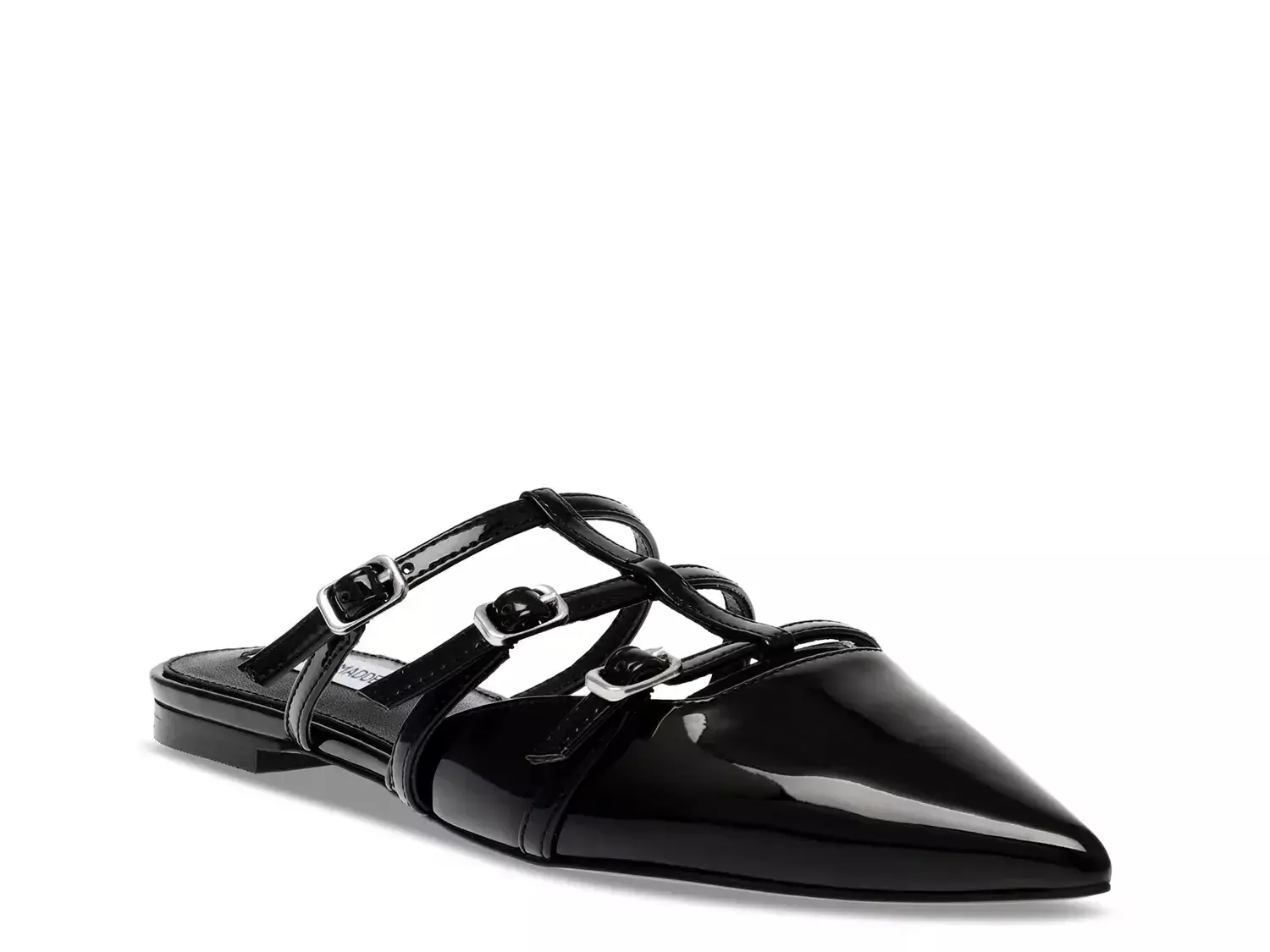 Добавьте немного остроты вашему образу с помощью мюлей Shatter от Steve Madden. Лаковое покрытие и тройной дизайн пряжек придают вашему ансамблю немного панк-рока.