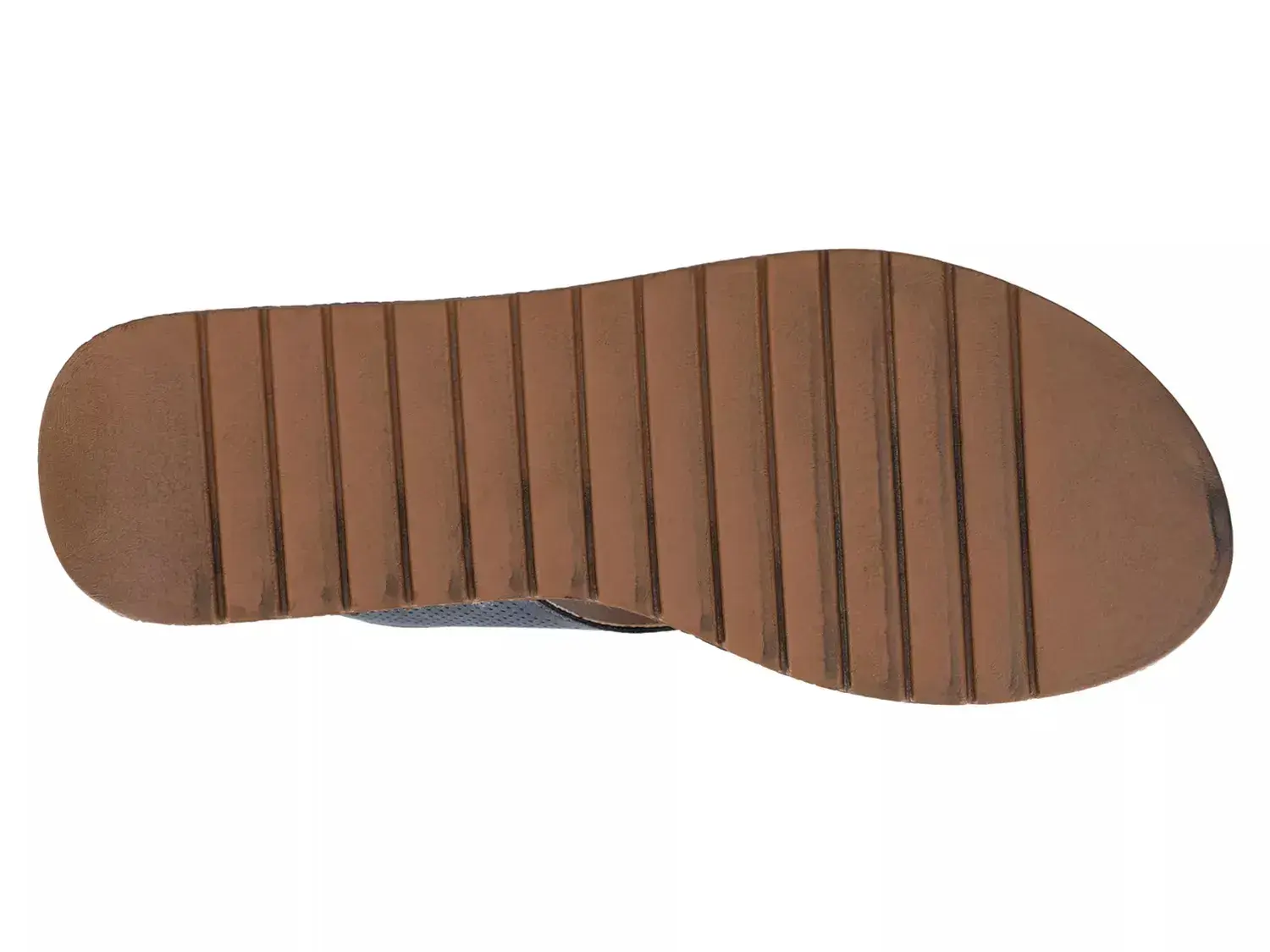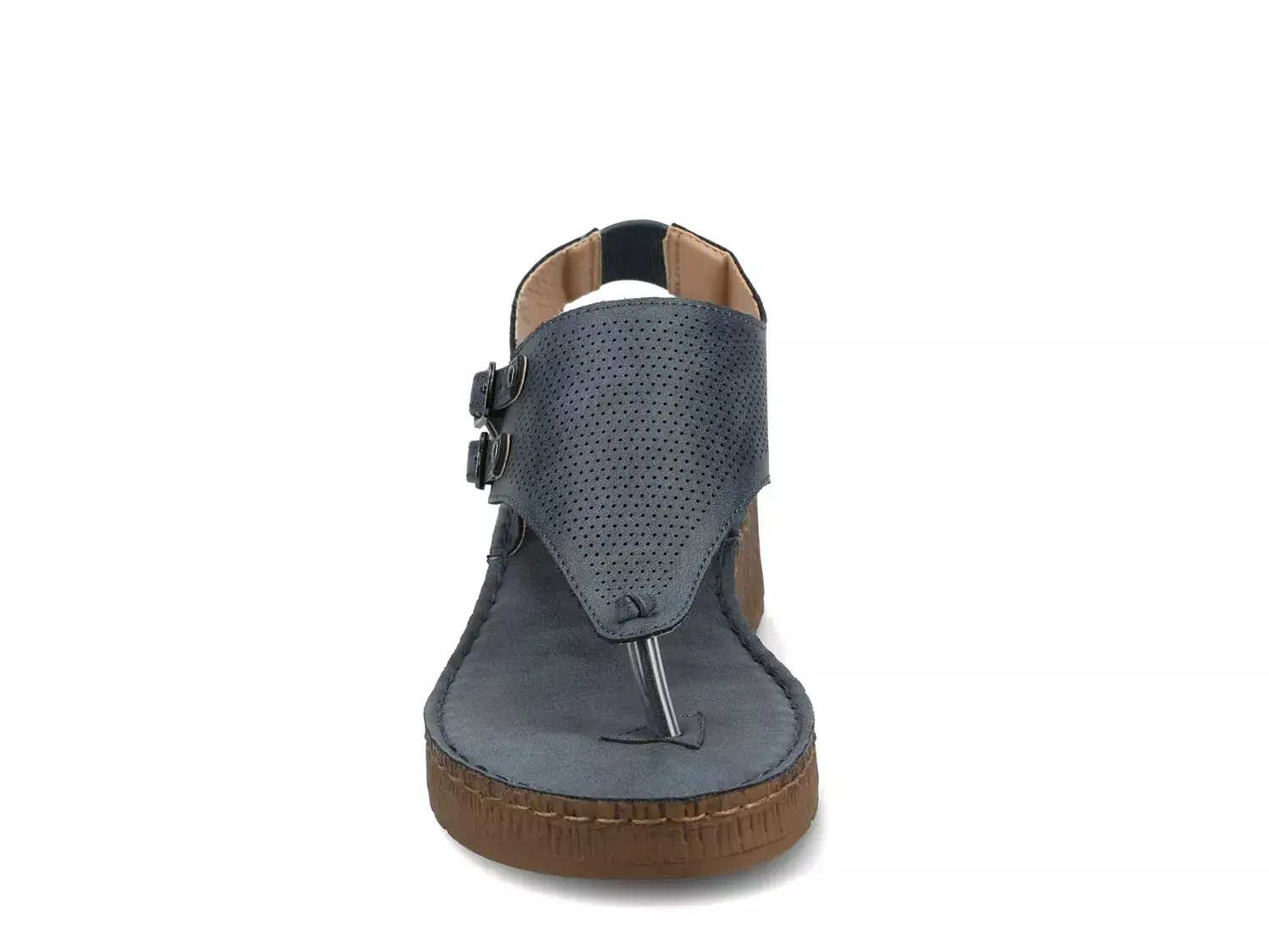 Прогулка с комфортом в туфлях на в wedges Mckell от Journee Collection. Широкий T-образный ремешок и удерживающий задник надежно фиксируют обувь, предотвращая скольжение и соскальзывание с подошвы, в то время как низкий клин обеспечивает контурный и комфортный подъем.
