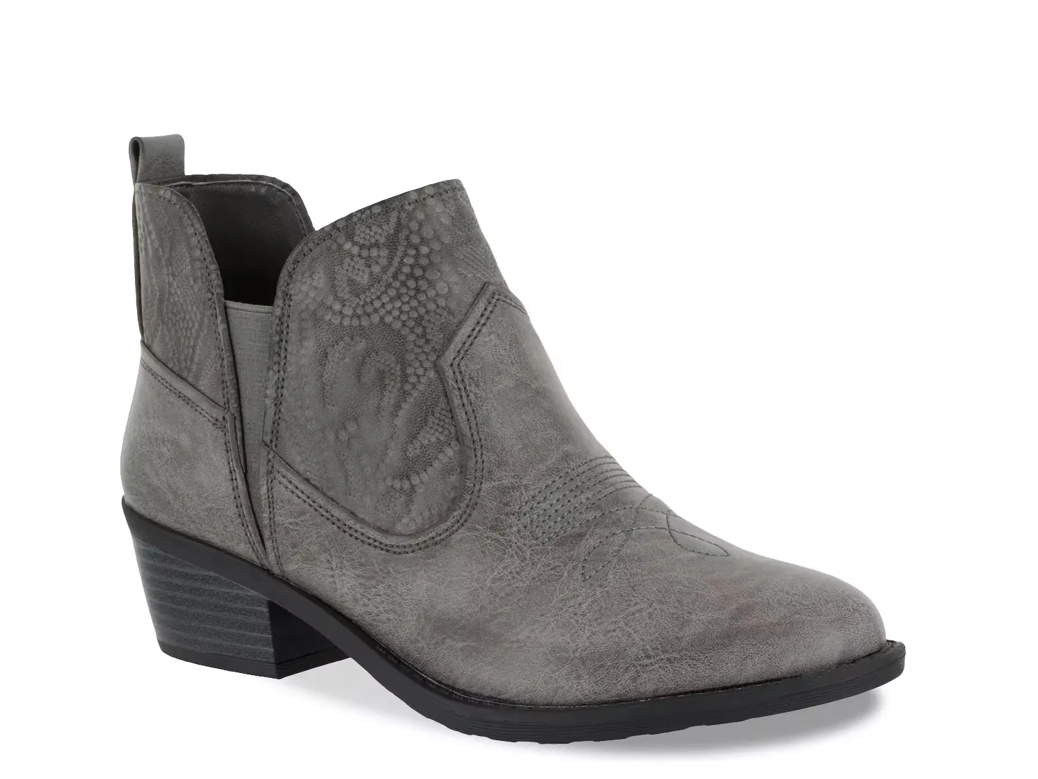 Немного западного стиля придает значимость ботильонам Legend от Easy Street. Сложная тисненая текстура и вышивка на миндалевидном носке придают этим ботильонам ковбойский шарм.