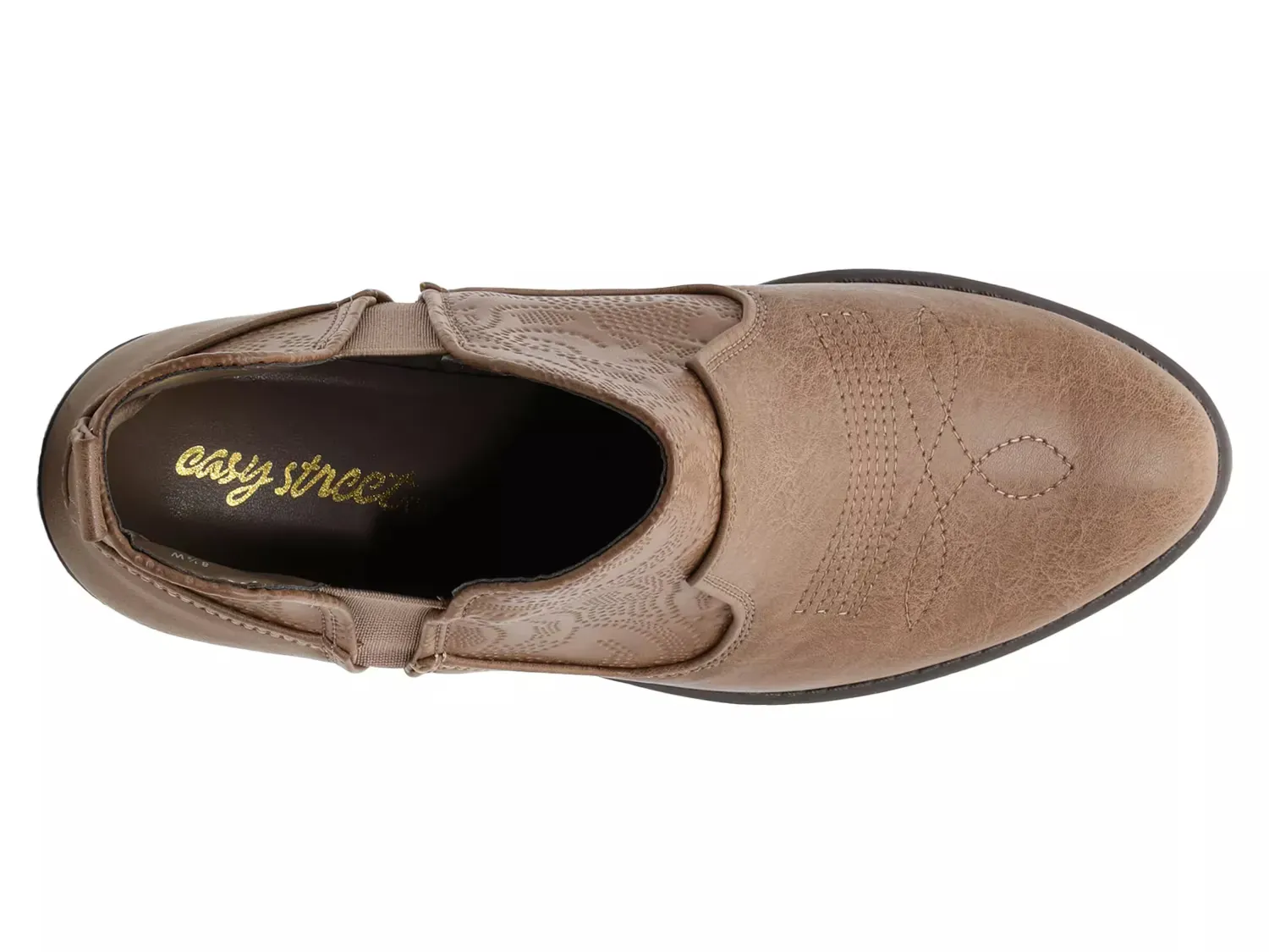 Немного западного стиля придает значимость ботильонам Legend от Easy Street. Сложная тисненая текстура и вышивка на миндалевидном носке придают этим ботильонам ковбойский шарм.