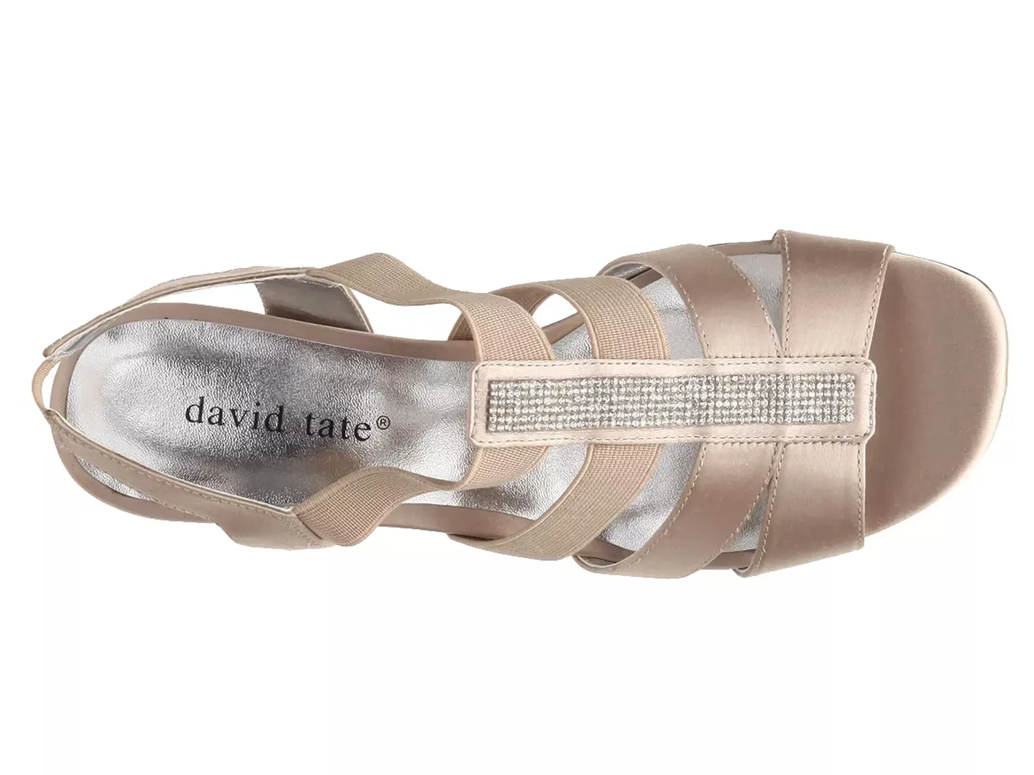 С мягким атласом и украшениями из страз, туфли на квадратном каблуке Event от David Tate легко подойдут к вашему вечернему наряду.