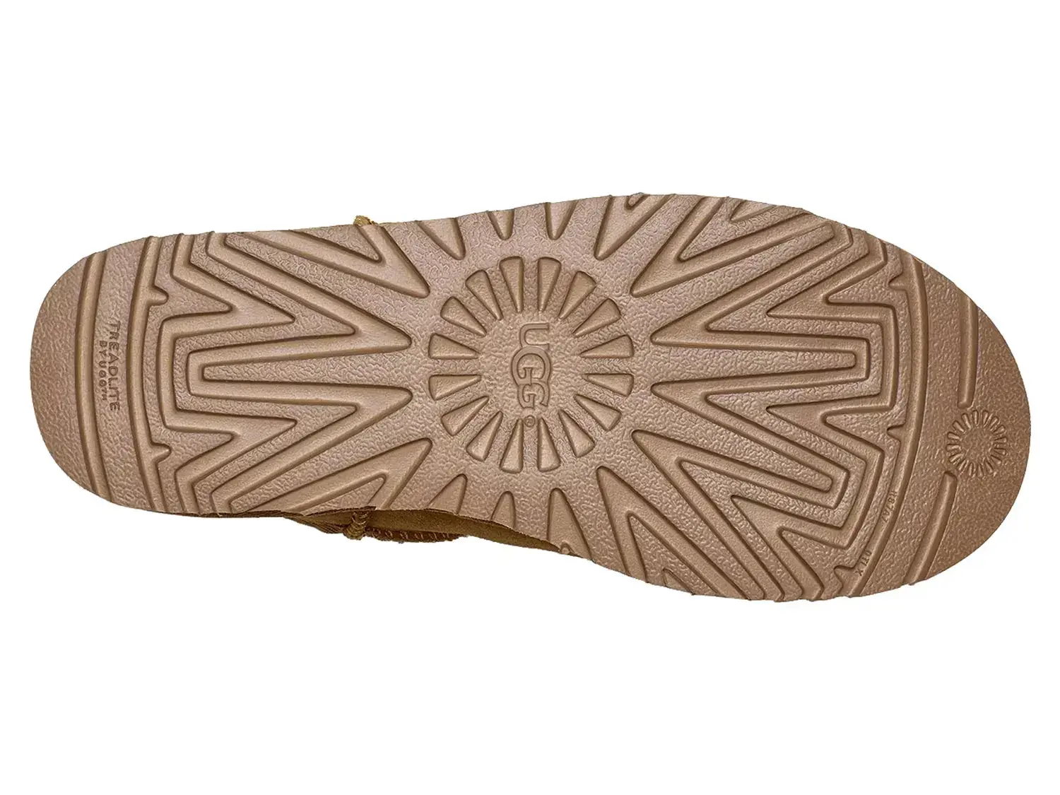 Оставайтесь в комфорте весь день в уггах Classic. Эти слипы имеют прочный замшевый верх и плюшевую подкладку, которые контрастируют с толстой платформой.