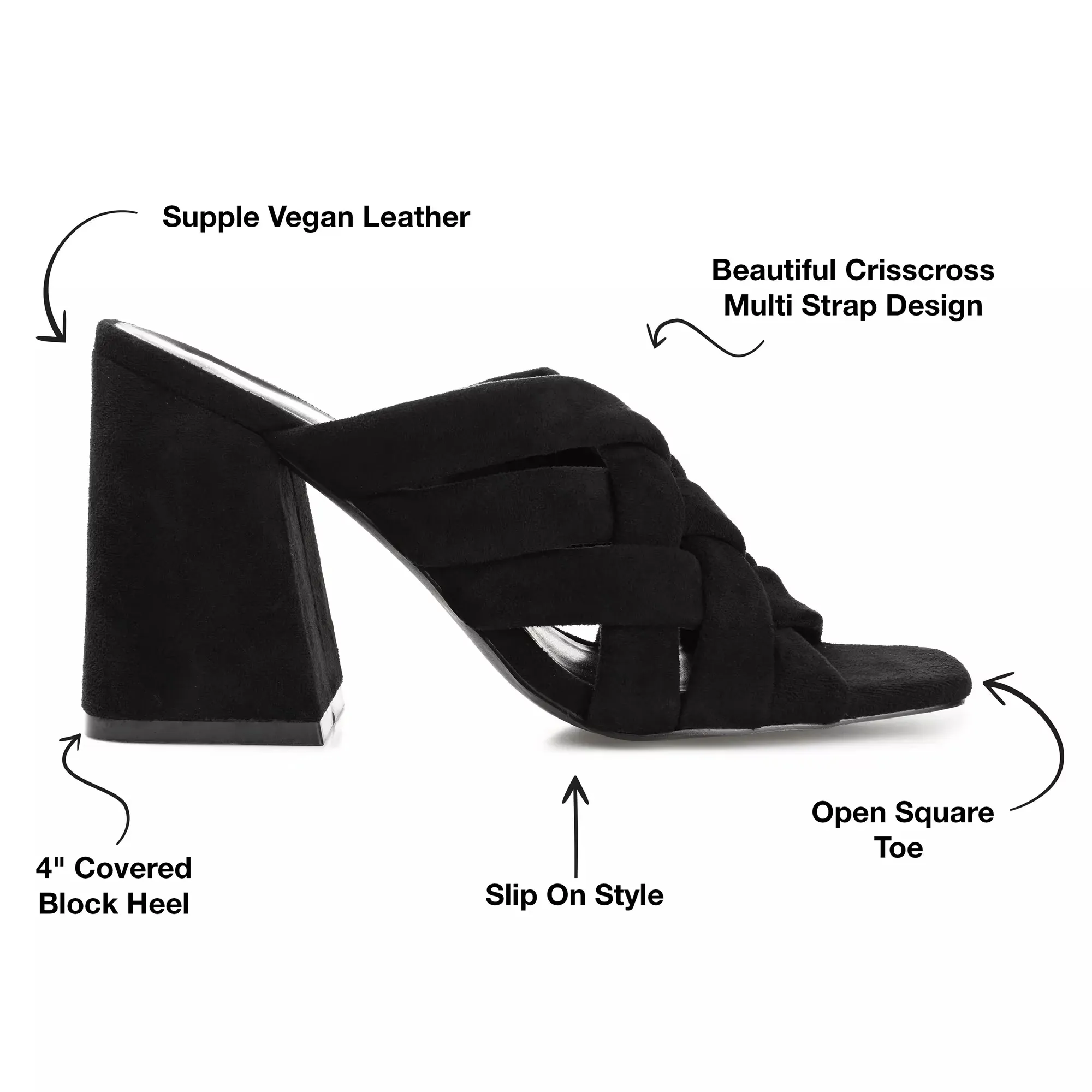 Проведите лето в стильных шлепанцах Dorisa от Journee Collection. Перекрестные ремешки, квадратный открытый носок и объемный квадратный каблук придают элегантности этой стильной обуви.