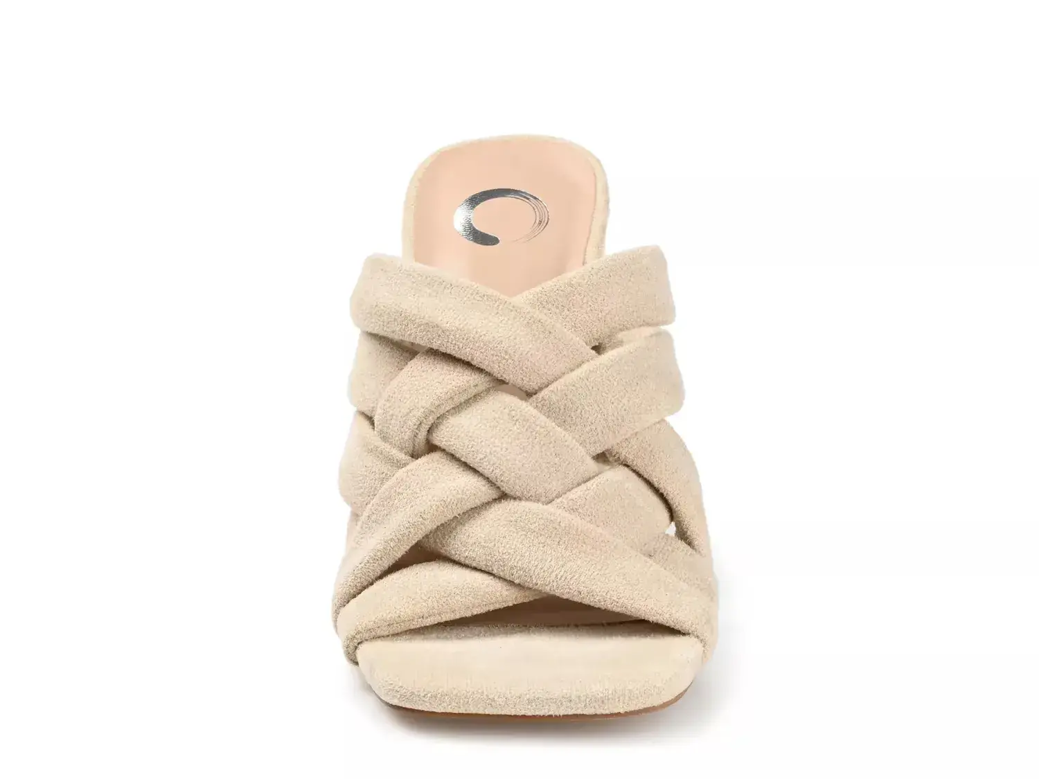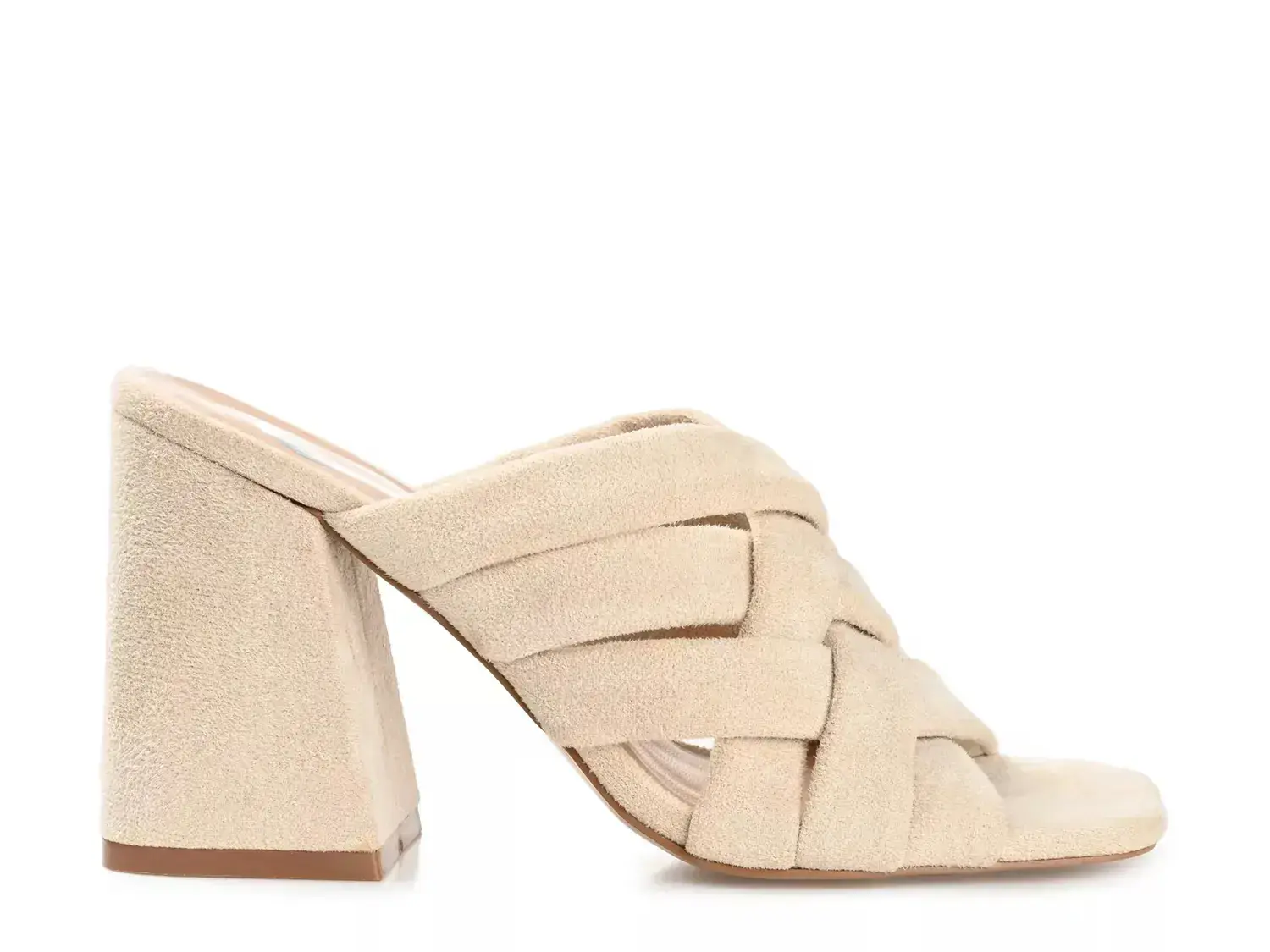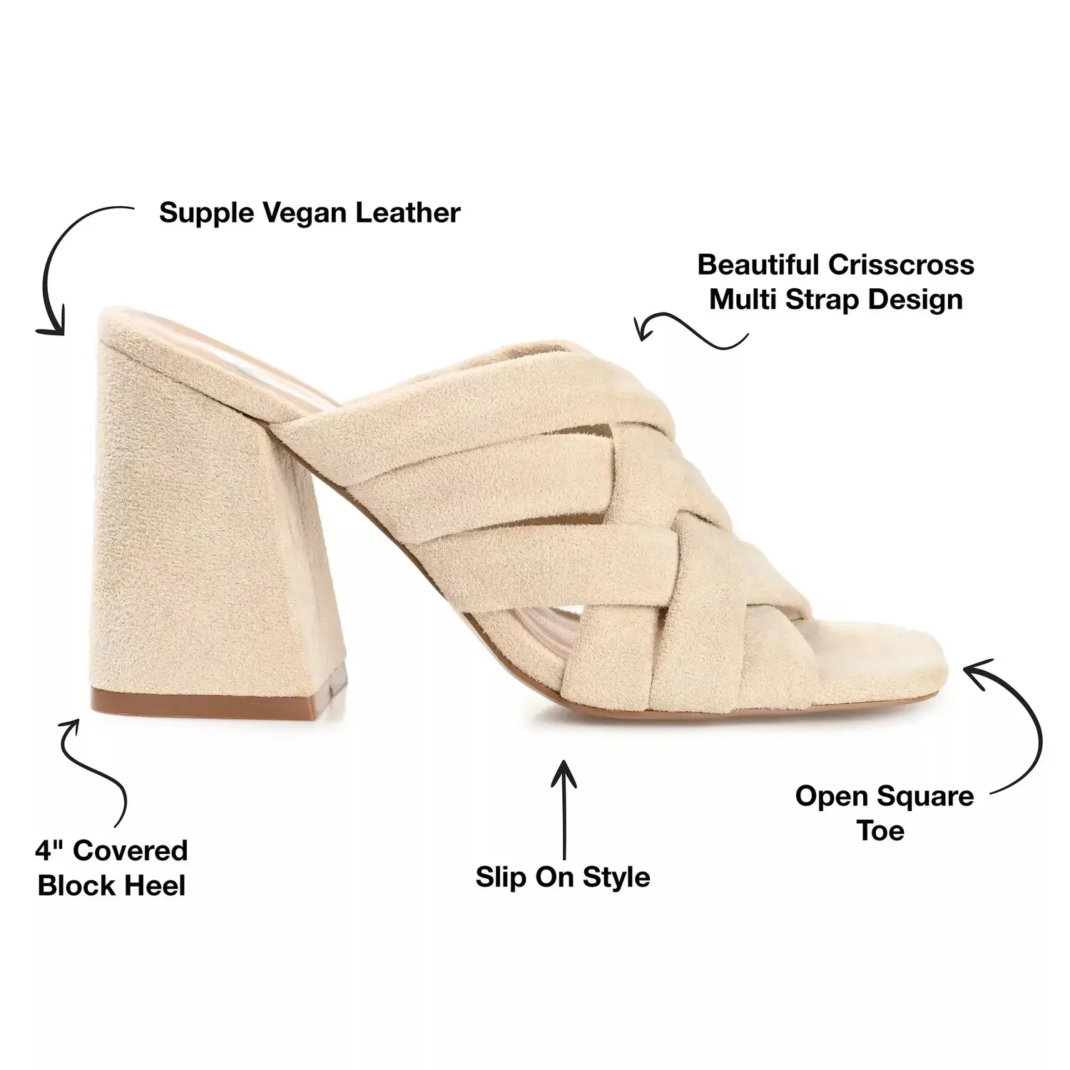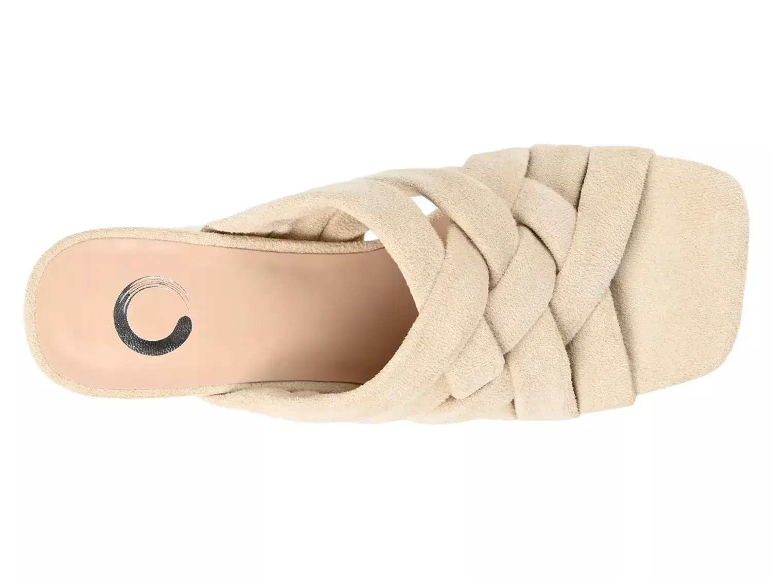 Проведите лето в стильных шлепанцах Dorisa от Journee Collection. Перекрестные ремешки, квадратный открытый носок и объемный квадратный каблук придают элегантности этой стильной обуви.