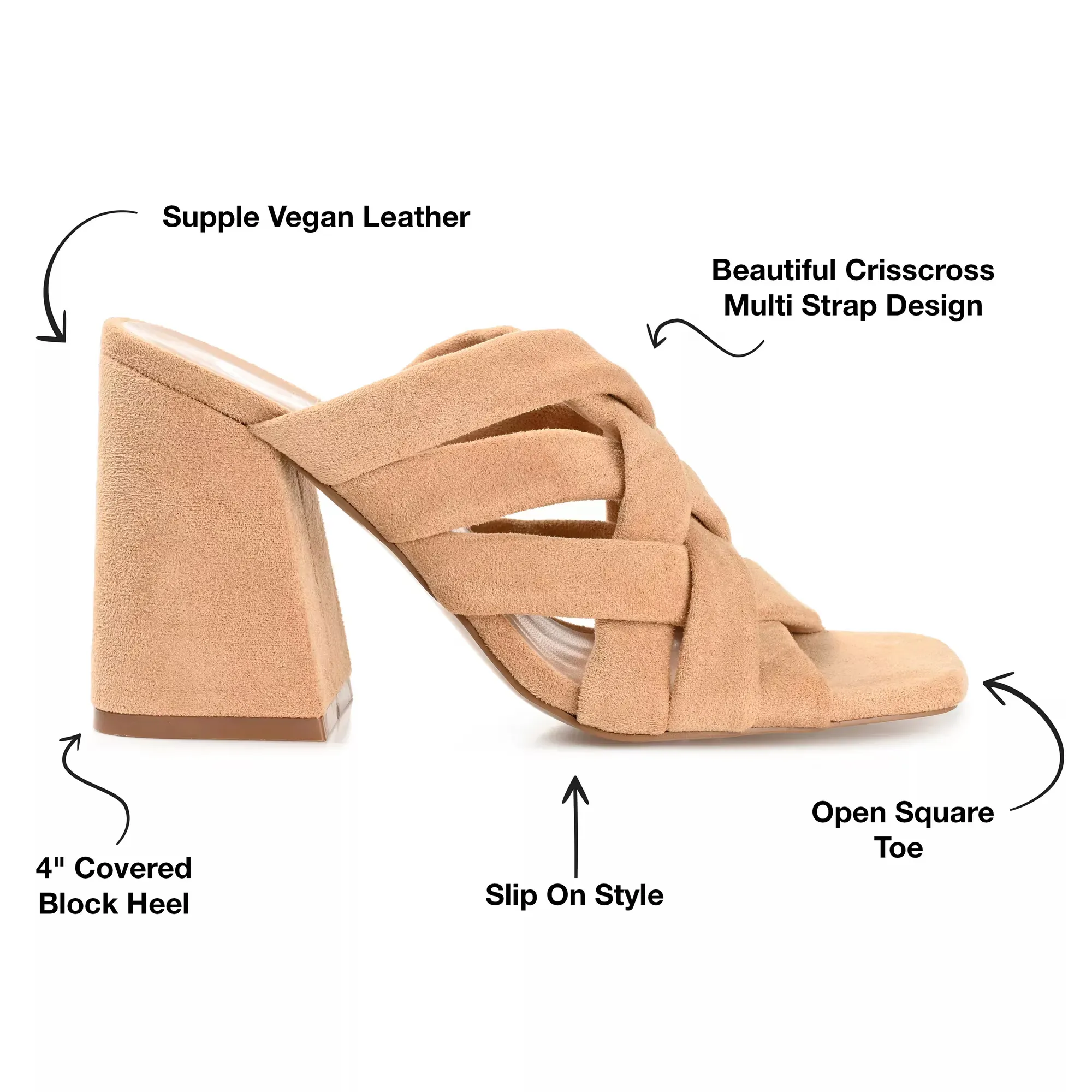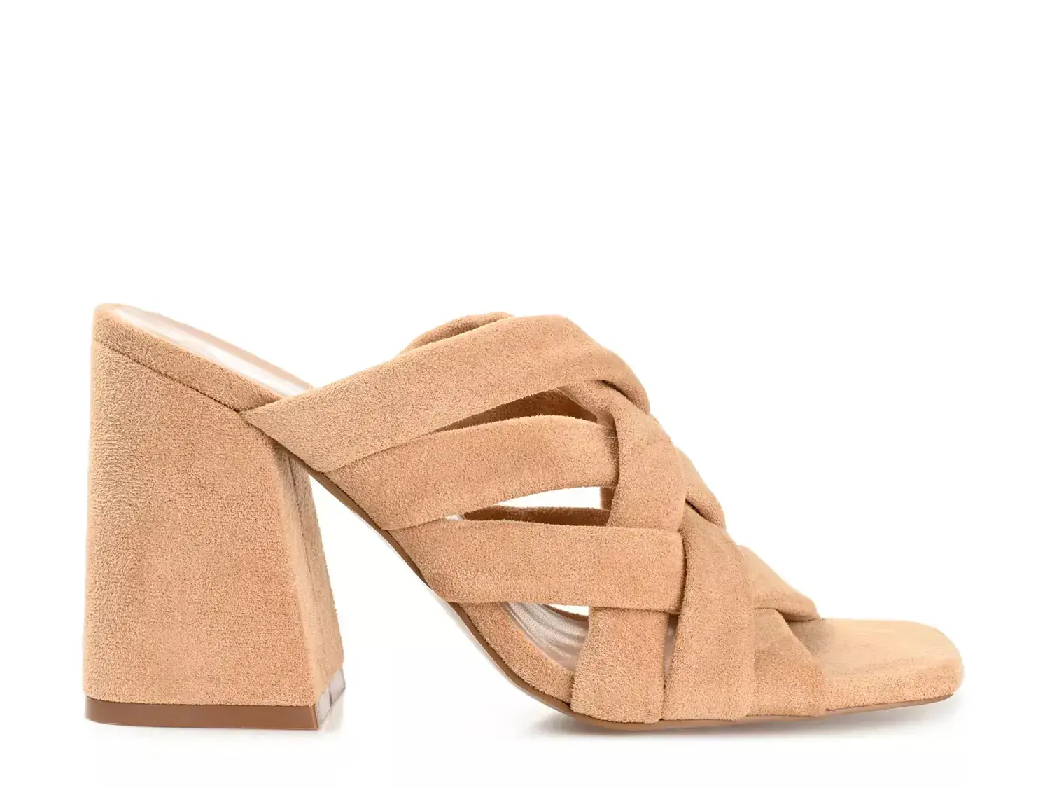 Проведите лето в стильных шлепанцах Dorisa от Journee Collection. Перекрестные ремешки, квадратный открытый носок и объемный квадратный каблук придают элегантности этой стильной обуви.