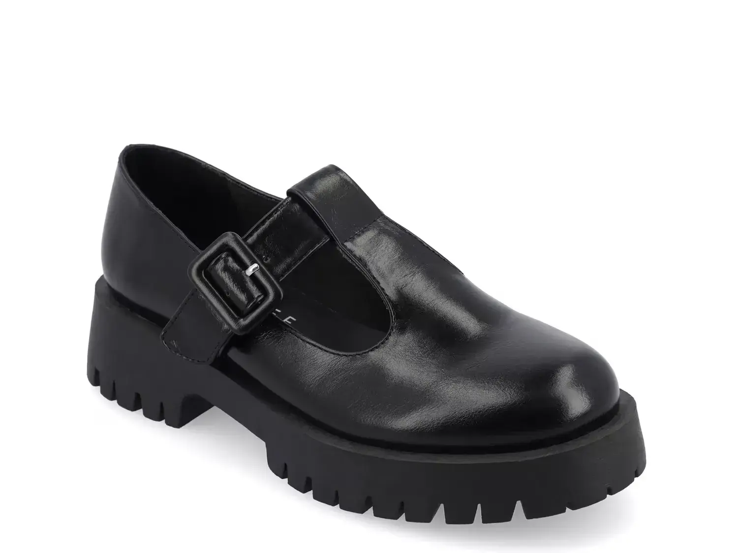 Добавьте остроты классическому силуэту с туфлями Suvi Mary Janes от коллекции Journee. Эти классические туфли с ремешком T-образной формы в стиле 90-х отличаются изысканным дизайном и массивной подошвой для смелого акцента.