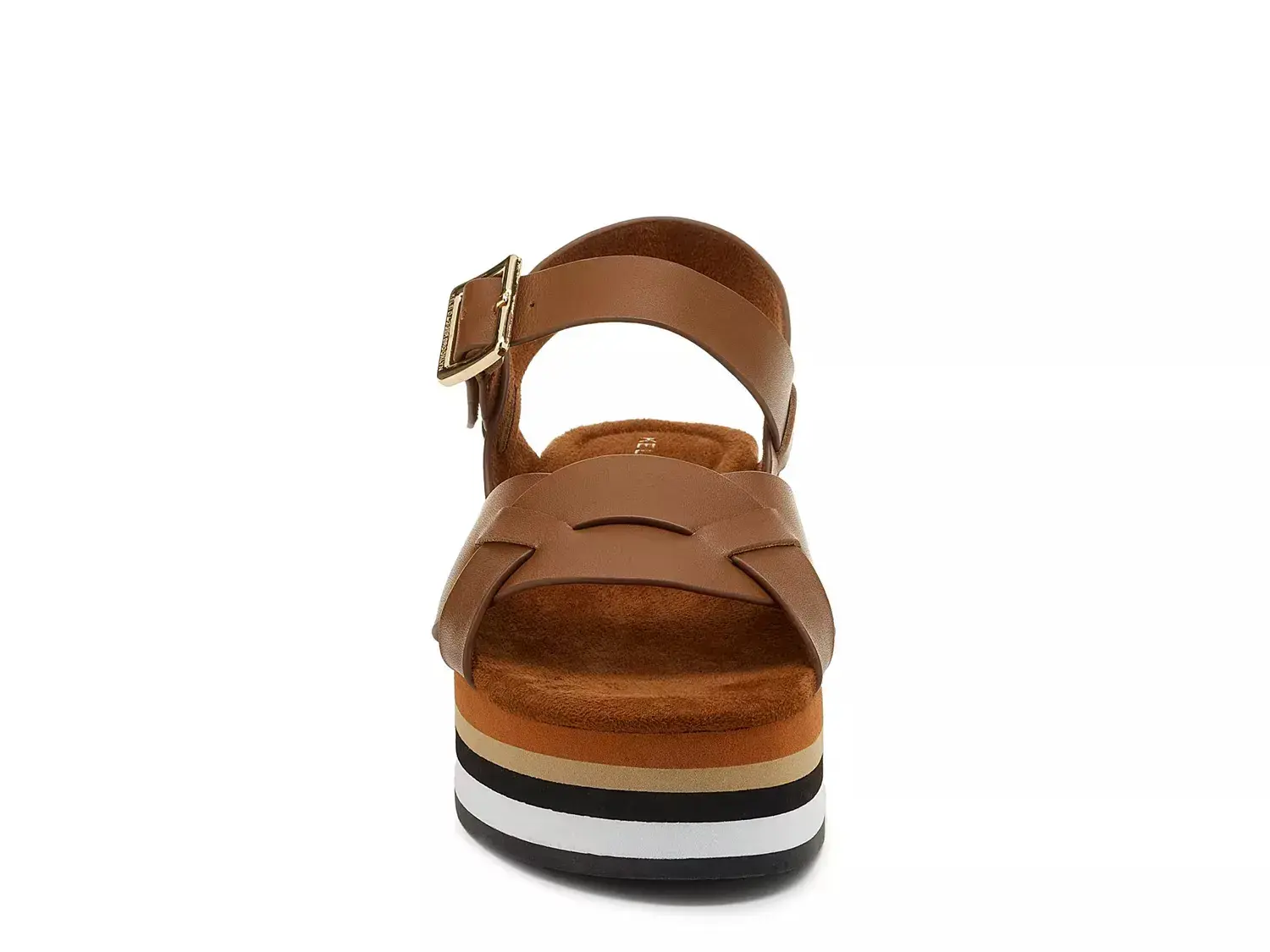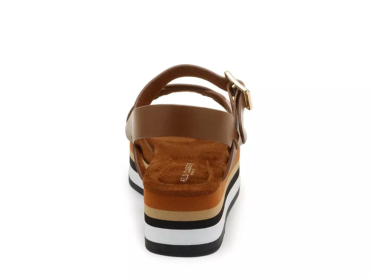 Получите сочетание ремесленного стиля и практичного комфорта в платформенных сандалиях Kelsi Dagger Brooklyn Breeze. Золотая пряжка KDB и платформы с цветными блоками в ретро-стиле привлекают все взгляды к регулируемым сандалиям.