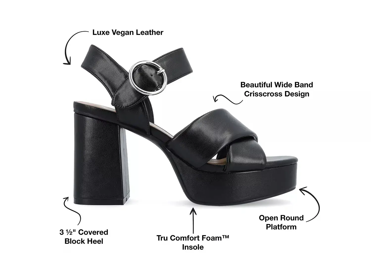 Классический стиль и непревзойденный комфорт сочетаются в платформенных сандалиях Akeely от коллекции Journee. Перекрестные верхние ремешки и высокий квадратный каблук подчеркивают этот синтетический сандалий, в то время как подошва из специального foam Tru Comfort обеспечивает комфорт вашим ногам на протяжении всего дня.