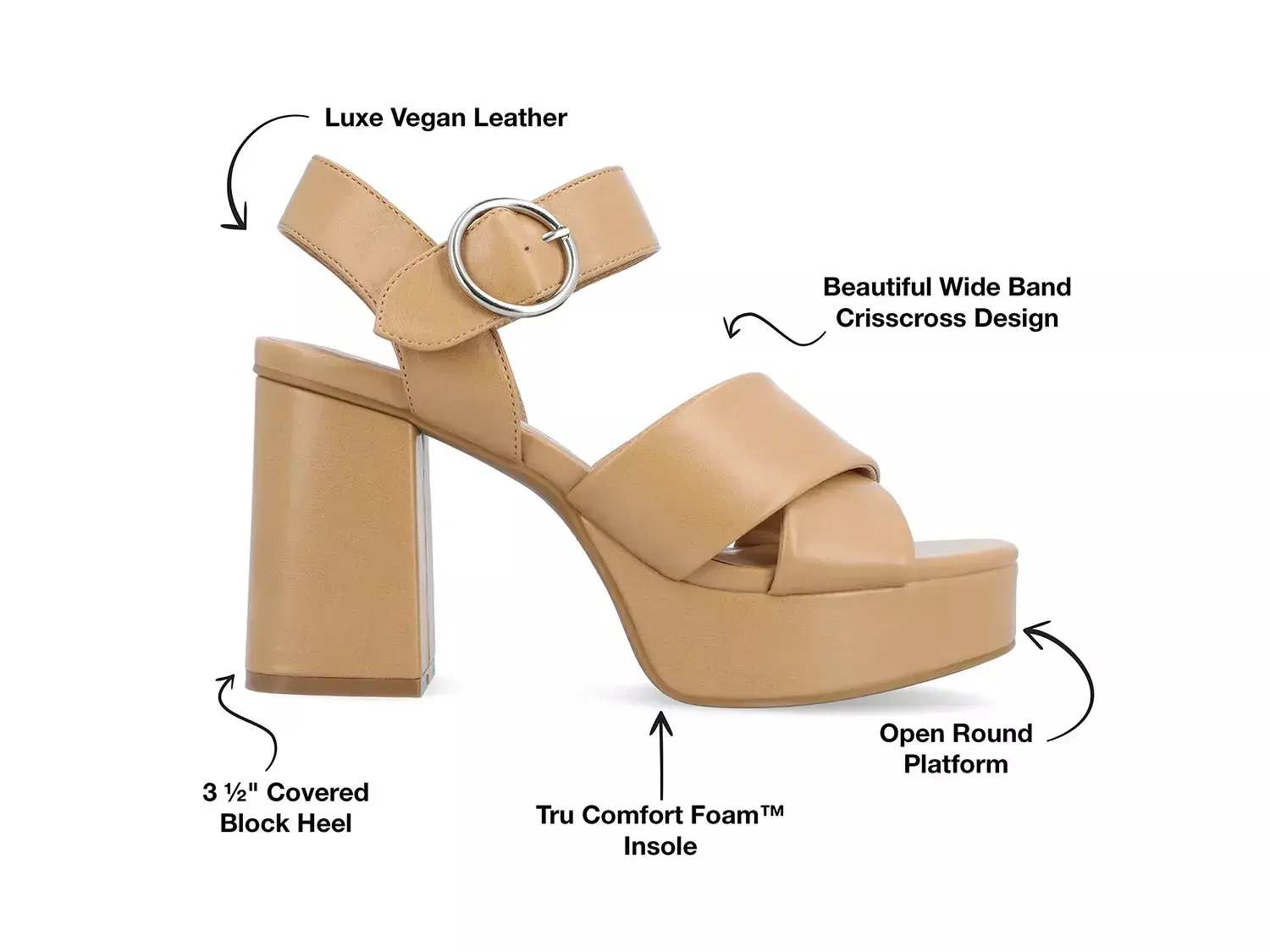 Классический стиль и непревзойденный комфорт сочетаются в платформенных сандалиях Akeely от коллекции Journee. Перекрестные верхние ремешки и высокий квадратный каблук подчеркивают этот синтетический сандалий, в то время как подошва из специального foam Tru Comfort обеспечивает комфорт вашим ногам на протяжении всего дня.