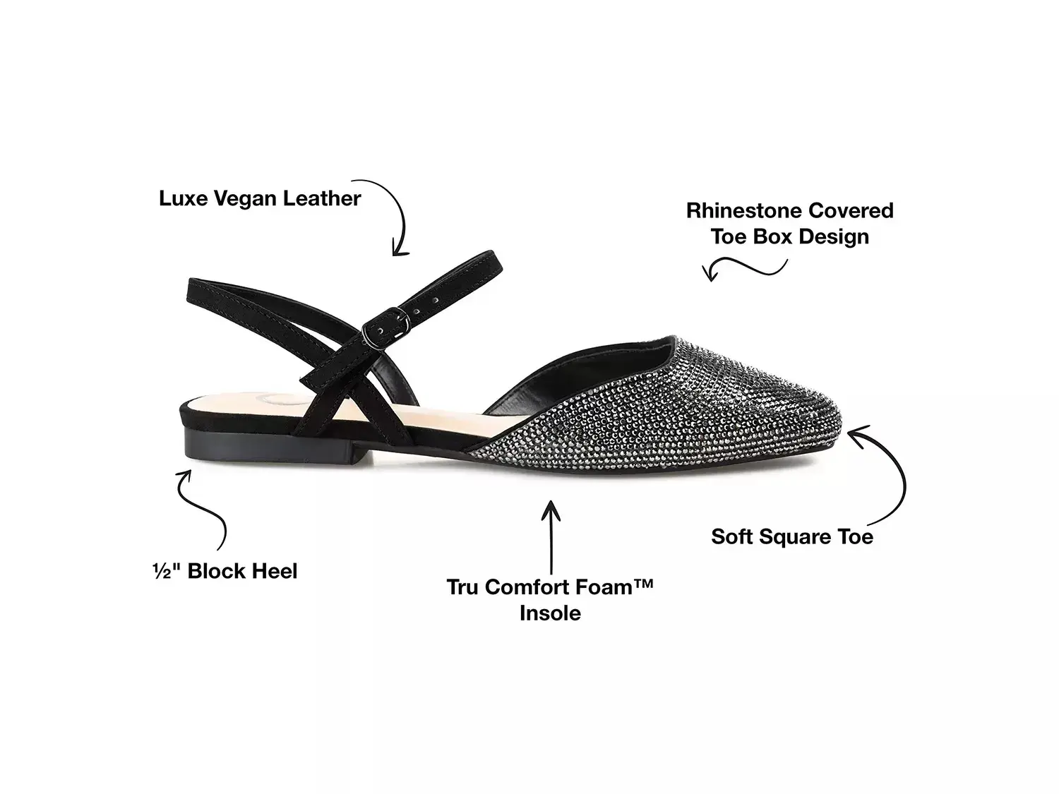 Плоская обувь Nysha от коллекции Journee превращает вас в красавицу, как только вы её обуете. Эти обувь с квадратным носком украшены стразами, что создает привлекательный вид. Стелька из пеноматериала Tru Comfort Foam толщиной 4 мм обеспечивает надежный комфорт, в то время как низкий блочный каблук придает легкий подъем.