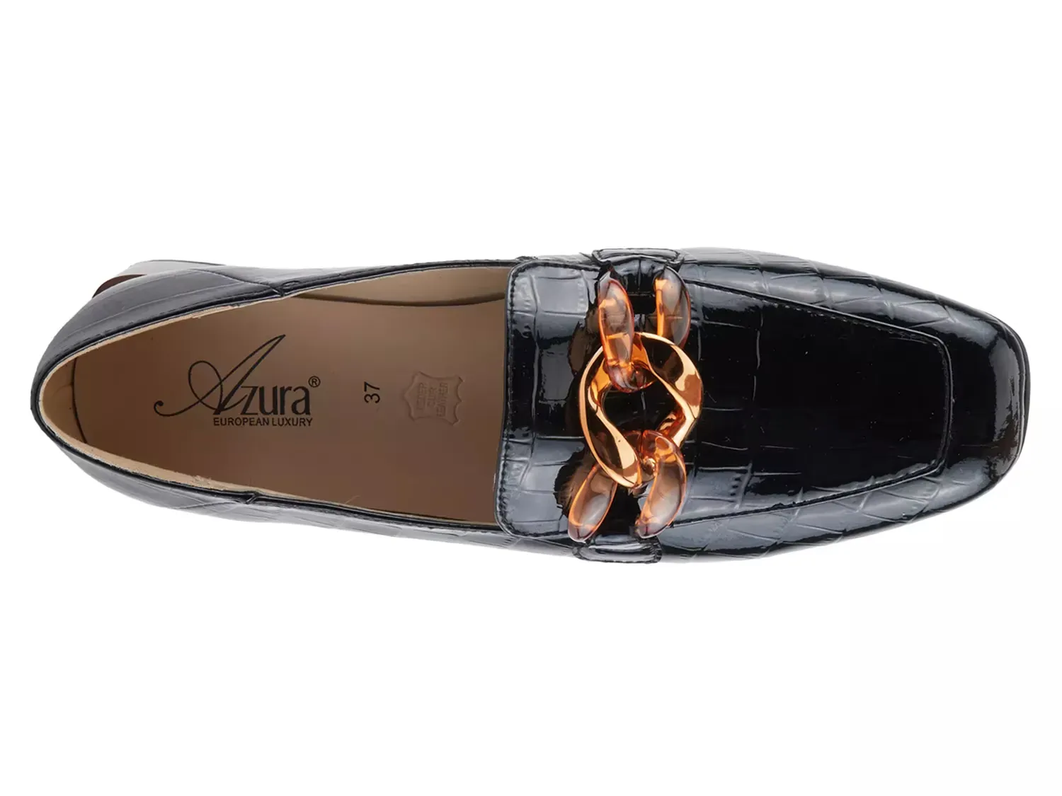 Добавьте винтажный стиль к своему профессиональному образу с помощью лоферов Baldwin от Azura. Лакированный блеск, тиснёная поверхность и сдержанный квадратный каблук легко поднимут ансамбль.
