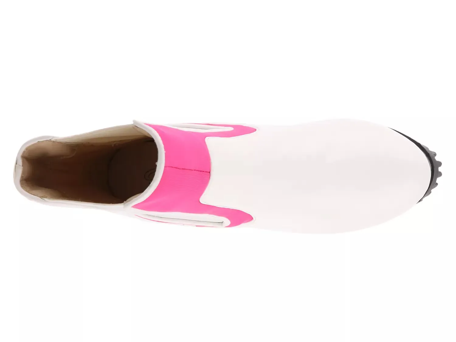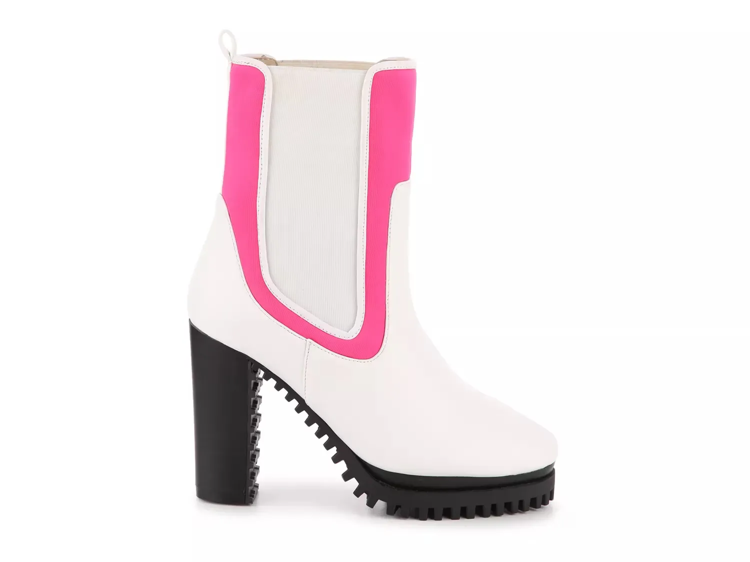 Будьте в центре внимания, надев ботильоны Fargo от Penny Loves Kenny. Высокий каблук, цветовой блок и стиль, вдохновленный челси, сочетаются вместе для создания великолепного образа!