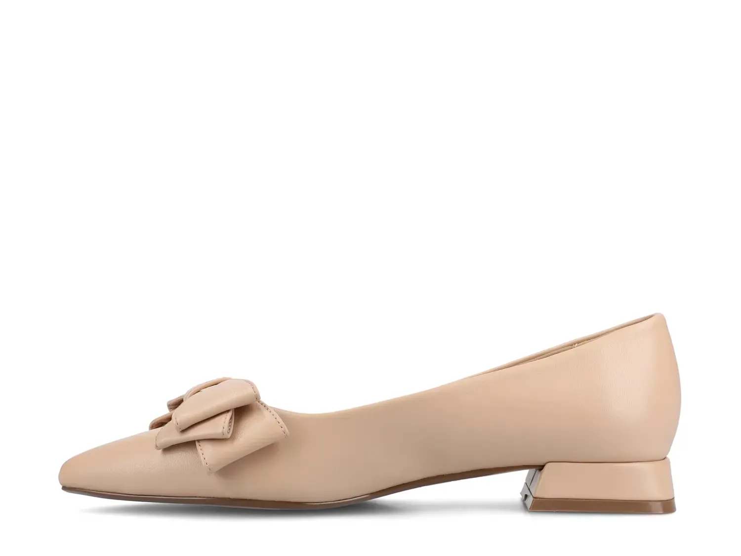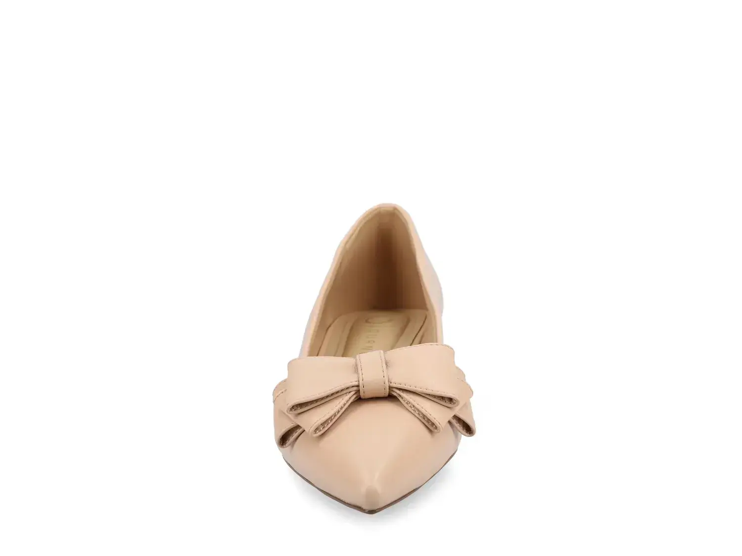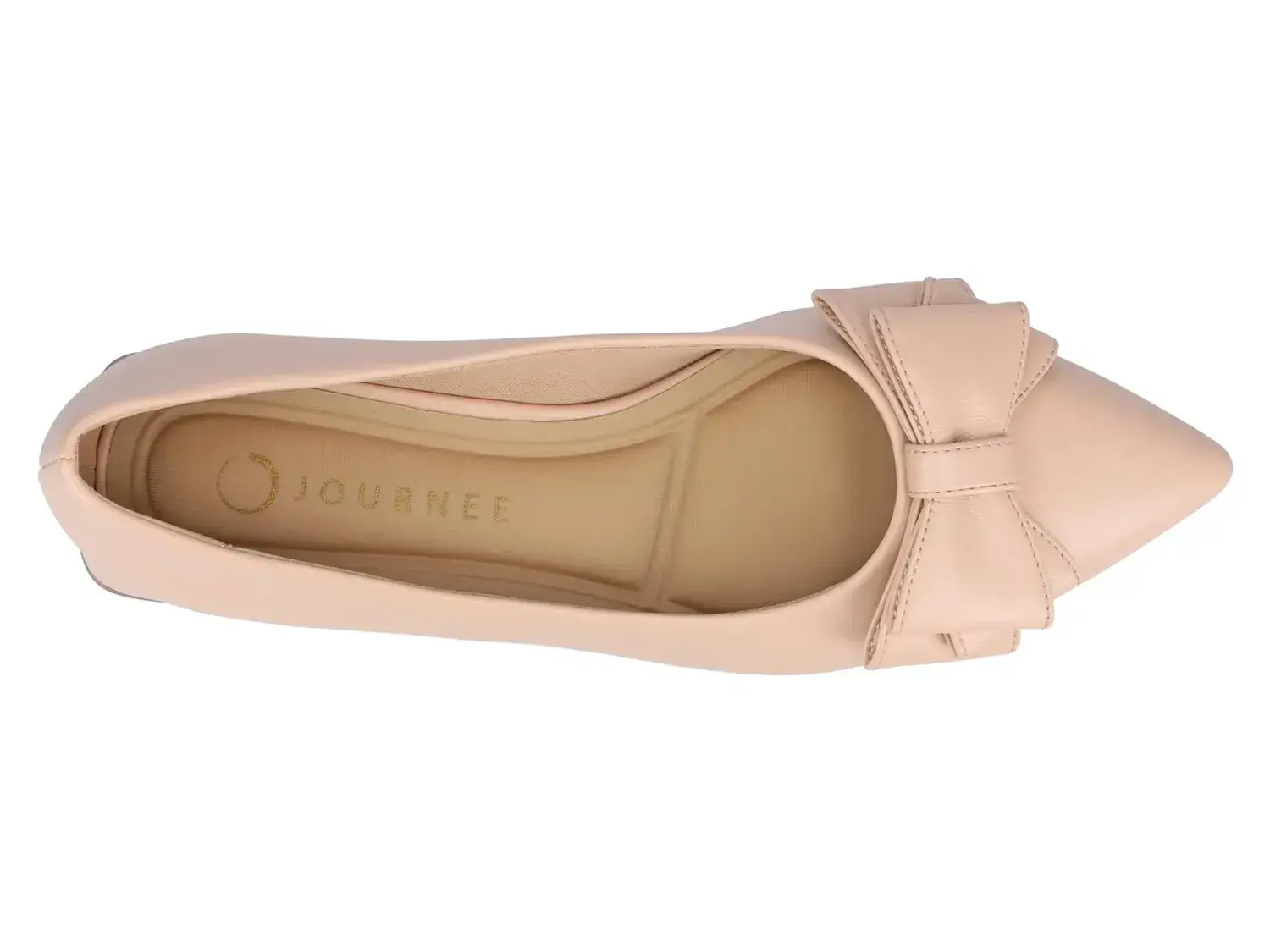 Коллекция Journee предлагает балетки Ophelia с элегантным стилем. Детали в виде бантика мгновенно привлекают внимание к этой балетке с остроконечным носком, дополненной мягкой тканевой подкладкой и удобной стелькой Tru Comfort Foam. Лакированная отделка придает полированный вид.