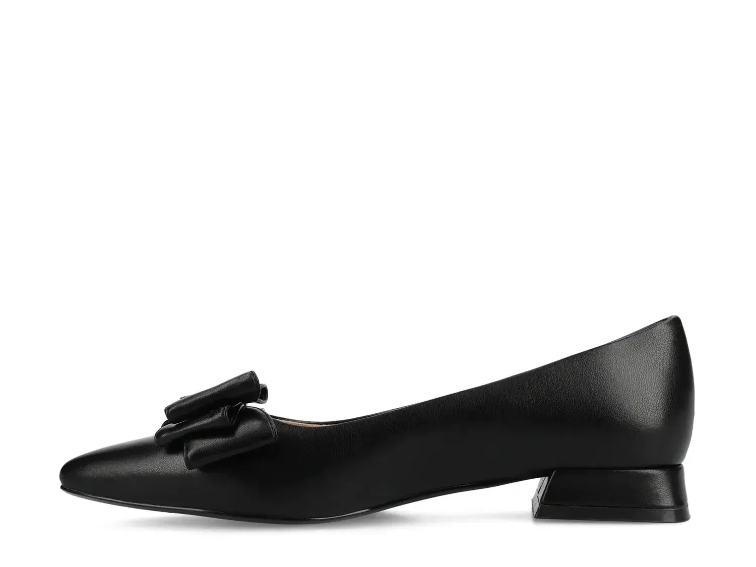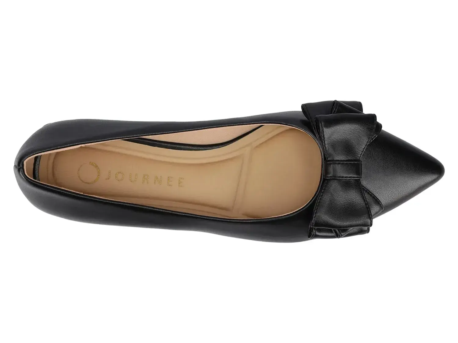 Коллекция Journee предлагает балетки Ophelia с элегантным стилем. Детали в виде бантика мгновенно привлекают внимание к этой балетке с остроконечным носком, дополненной мягкой тканевой подкладкой и удобной стелькой Tru Comfort Foam. Лакированная отделка придает полированный вид.