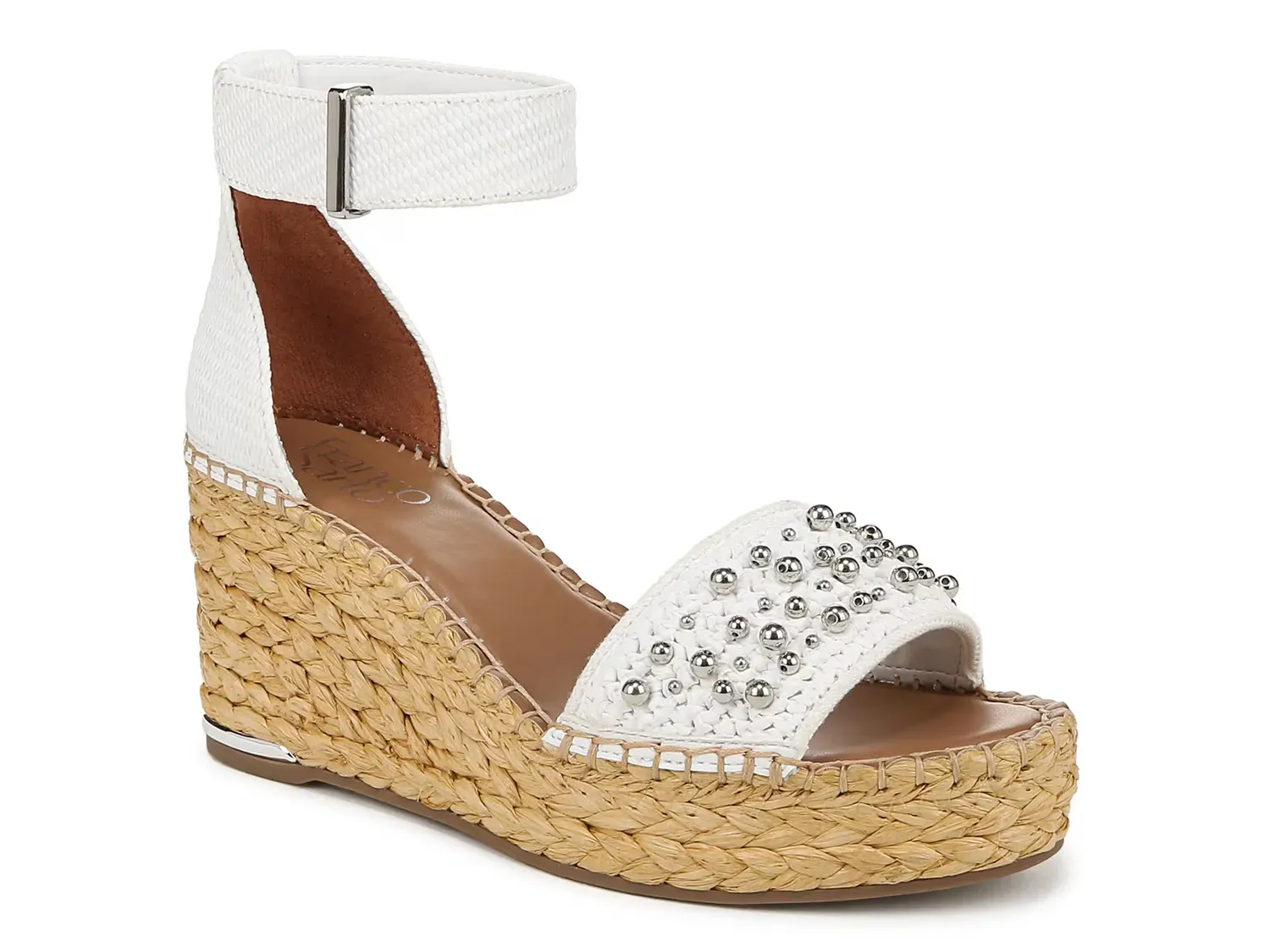 Добавьте немного блеска в свою летнюю одежду с помощью wedge-сандалий Franco Sarto Clemens. Сияющие бусины на ремешке носка создают драгоценный вид для эспадриль. Ремешок с липучкой и металлическими деталями обеспечивает индивидуальную подгонку.