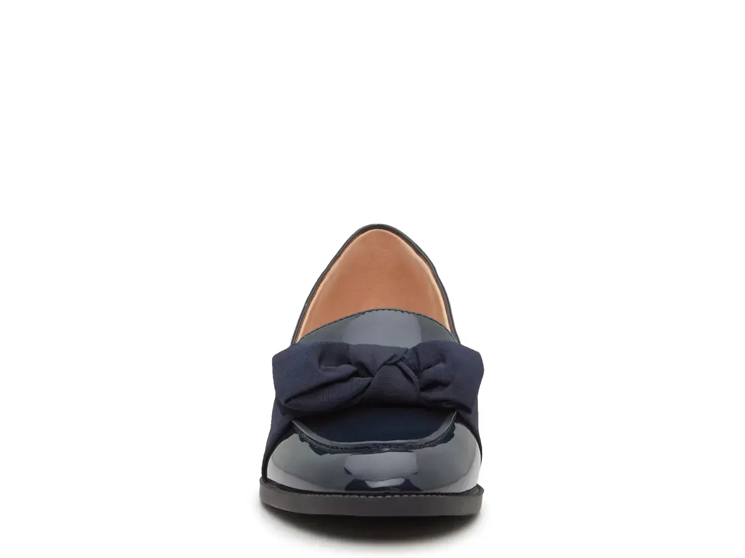 Уточните свой профессиональный вид с женственным шармом. Лоферы Lindio от Bandolino имеют классический силуэт, дополненный глянцевым лакированным оттенком. Завершены милым акцентом вдоль верха, а также вечными элементами, такими как вырез и мокасинный носок.
