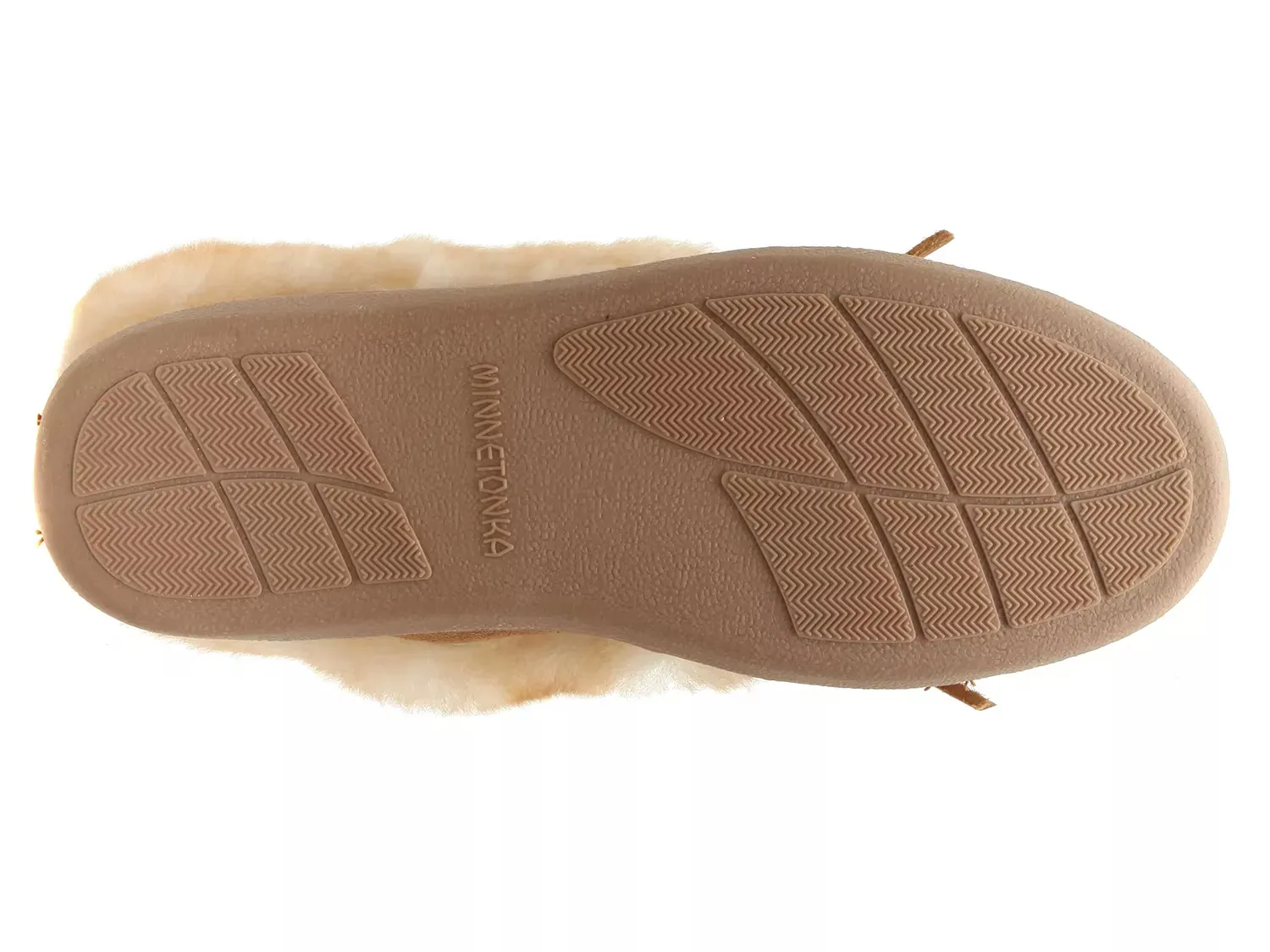 Уютно устроитесь в альпийских тапочках от Minnetonka. Эти мокасины выполнены из мягкой замши и отделаны овечьей шерстью, чтобы обеспечить дополнительное тепло в холодные дни.