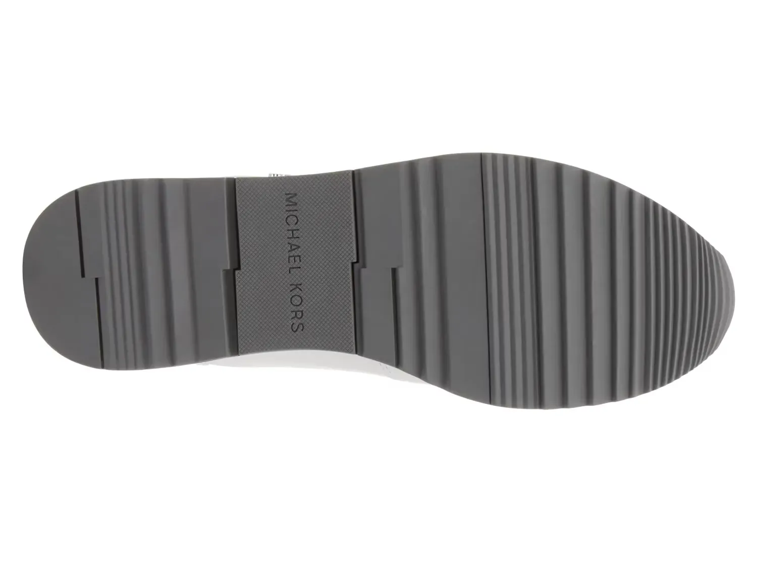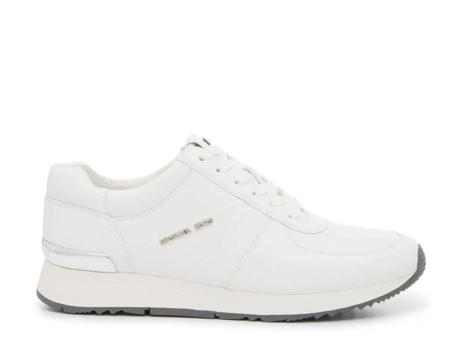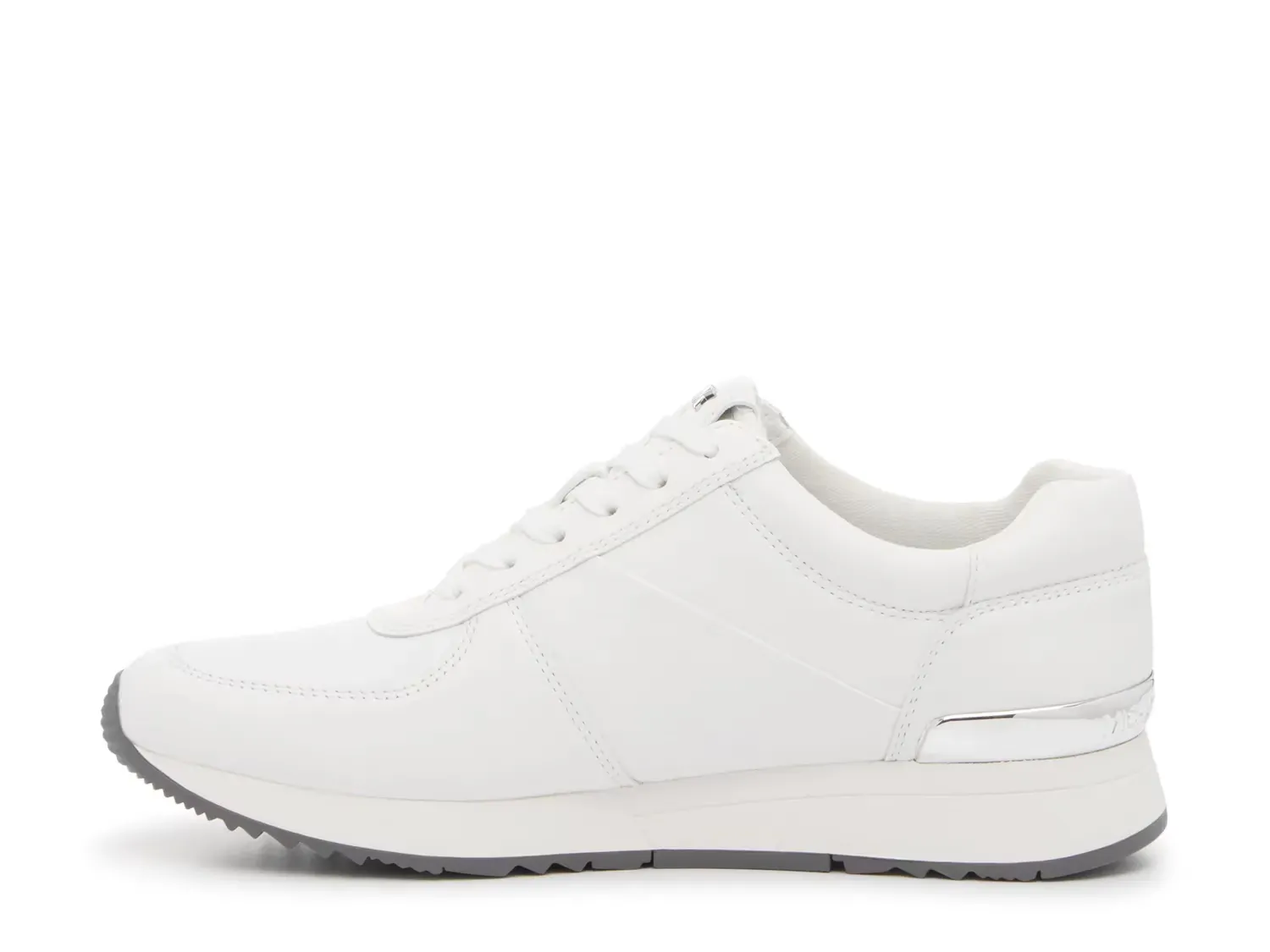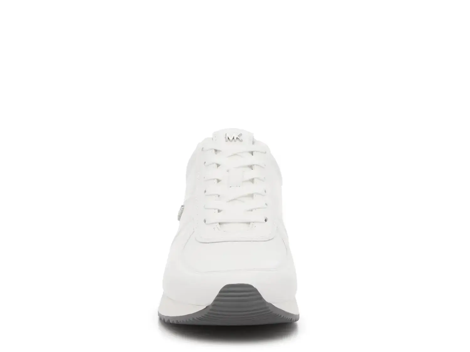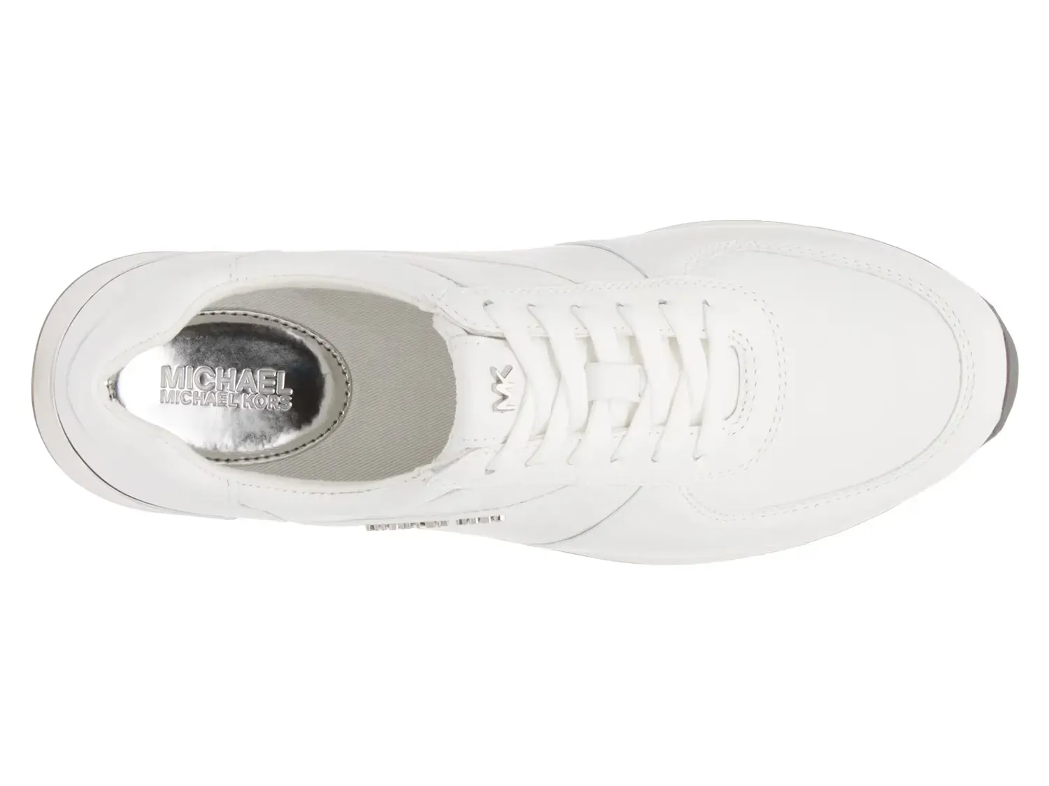 Выйдите на улицу в спортивном стиле с кроссовками Allie от Michael Michael Kors. Эти низкие кроссовки оформлены в упрощенном дизайне, отделанном металлическими элементами на пятке и совпадающими логотипами. Белая межподошва контрастирует с элегантным верхом из искусственной кожи.