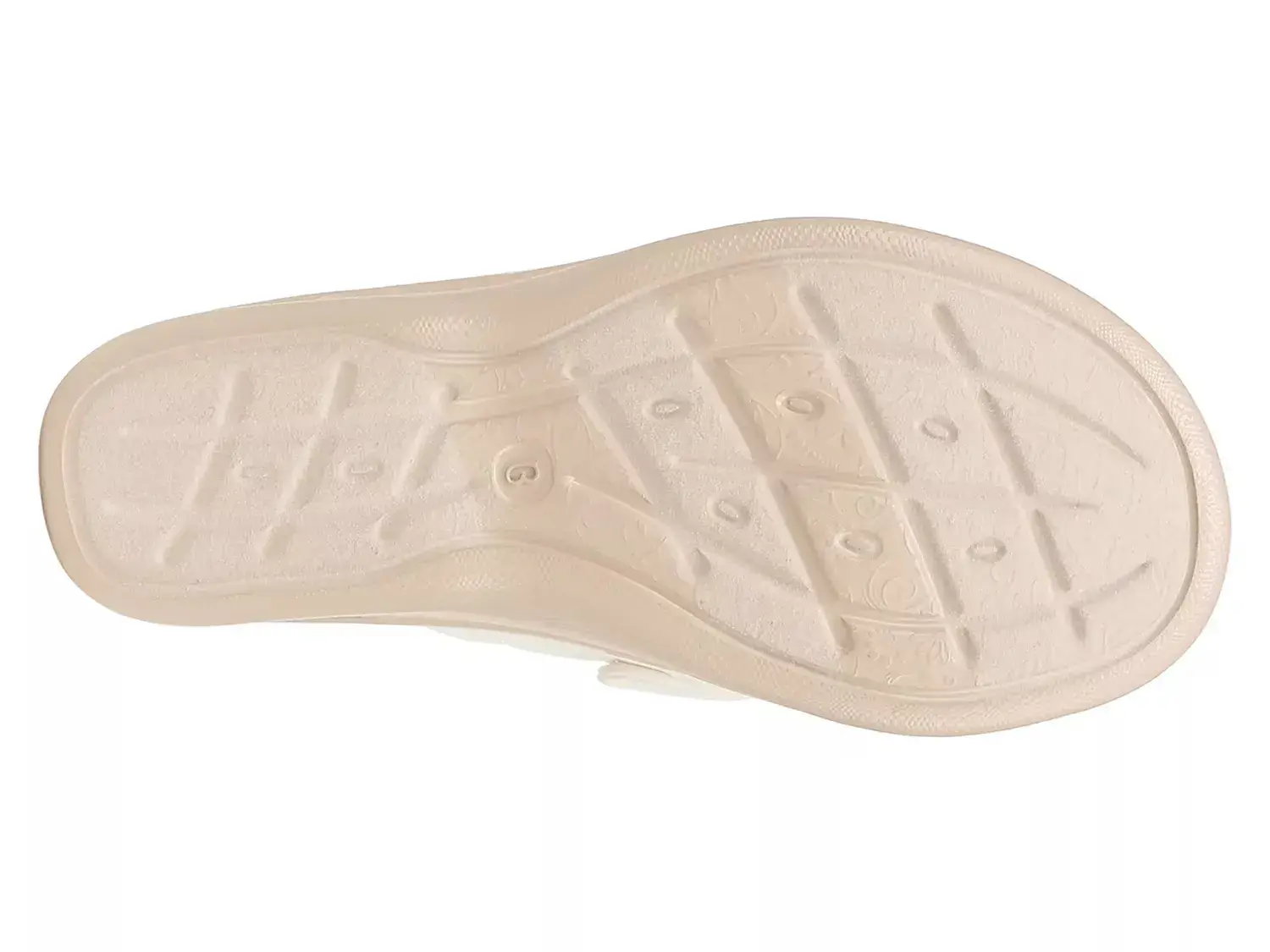 Детали в виде завязанного банта и логотипа золотого цвета на верхней части сандалий Bzees Smile привлекают внимание. Технология BZEES Cloud обеспечивает повышенный комфорт благодаря легкости. Ваши ноги останутся свежими и удобными на протяжении всего дня благодаря свободной пене в стельке, а также технологиям контроля микробов и запаха. Конструкция, которую можно стирать в машине, делает эту платформенную сандалию легкой в уходе.