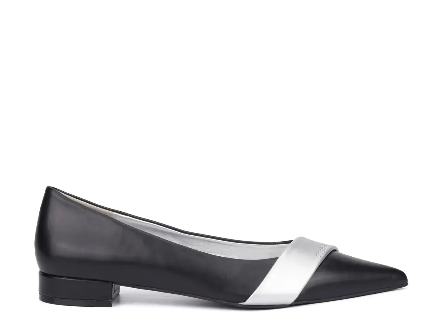 Добавьте идеальное завершающее штрих к своим любимым формальным образам, надев балетки Harriet от TORGEIS. Этот стильный силуэт имеет шикарный заостренный носок и асимметричный ремешок.