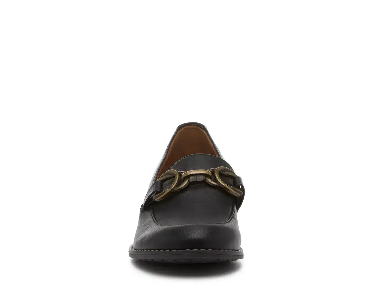 Завершите свой образ с помощью ультрасовременного штриха. Лоферы Nia от Eurosoft имеют профессиональный силуэт. Они дополнены утолщенным каблуком, округлым носком и бронзовой деталью, что придаёт вашему стилю изысканный вид.