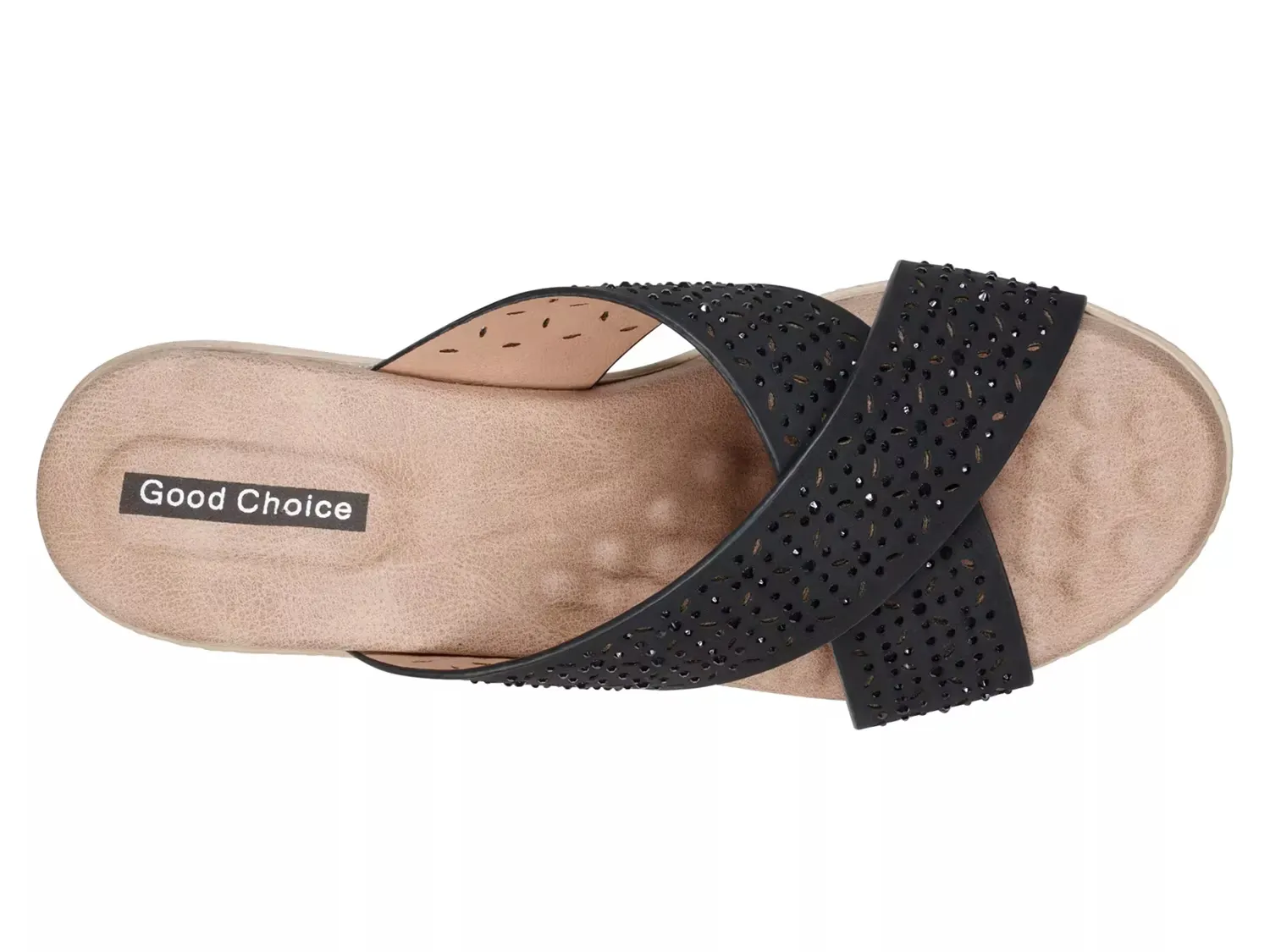 Сандали на танкетке Malia от Good Choice демонстрируют вечную элегантность. Перекрещенные полосы с деликатными вырезами и стразами подчеркивают эту платформу, поднятую на текстурированной танкетке.