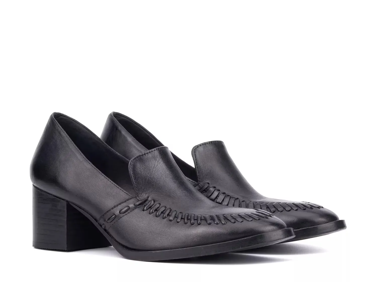 Пусть ваши ноги говорят сами за себя с туфлями Elaine от Vintage Foundry. Дизайн с элементами лоферов и ярко выраженной отделкой стежками придаёт стильный вид этой кожаной обуви без задников. Высокий прямоугольный каблук завершает образ.