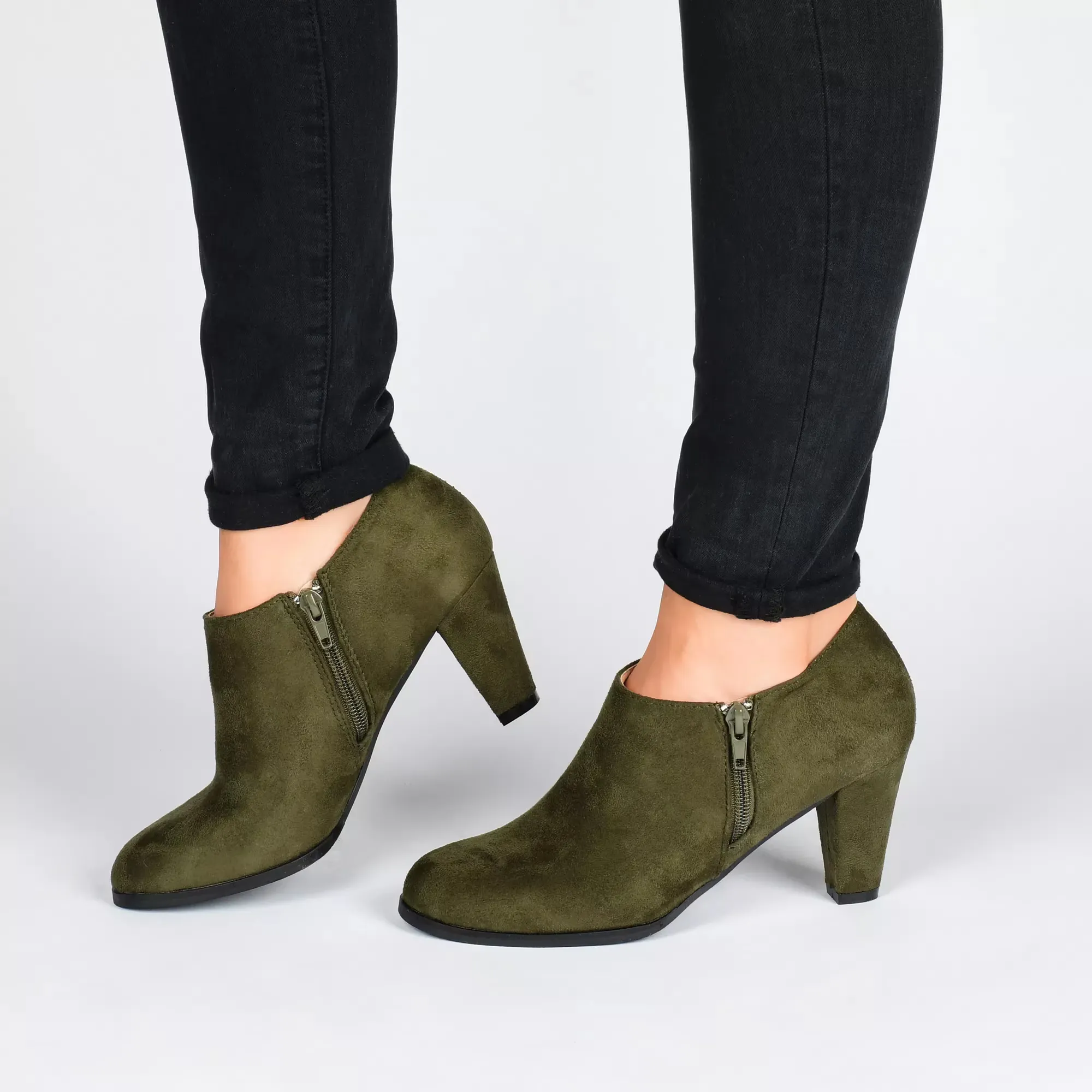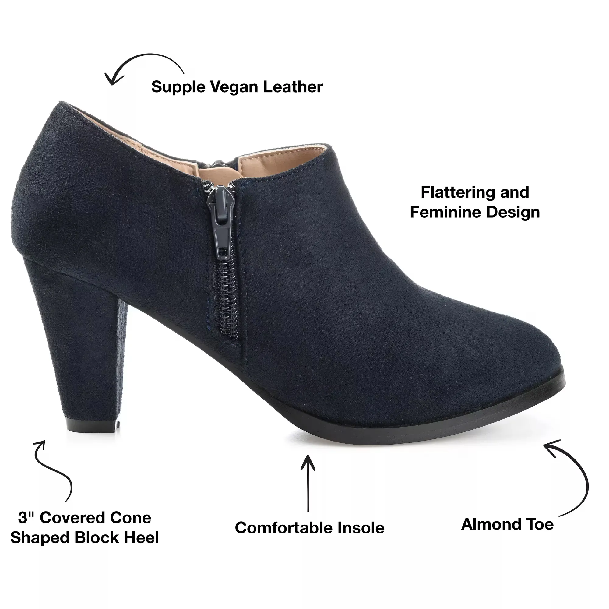Создайте стиль, который задает тренды, носив ботильоны Sanzi от Journee Collection. Эти ботильоны имеют среднем каблуке и удобную мягкую стельку для поддержки طوال 날 착용!.