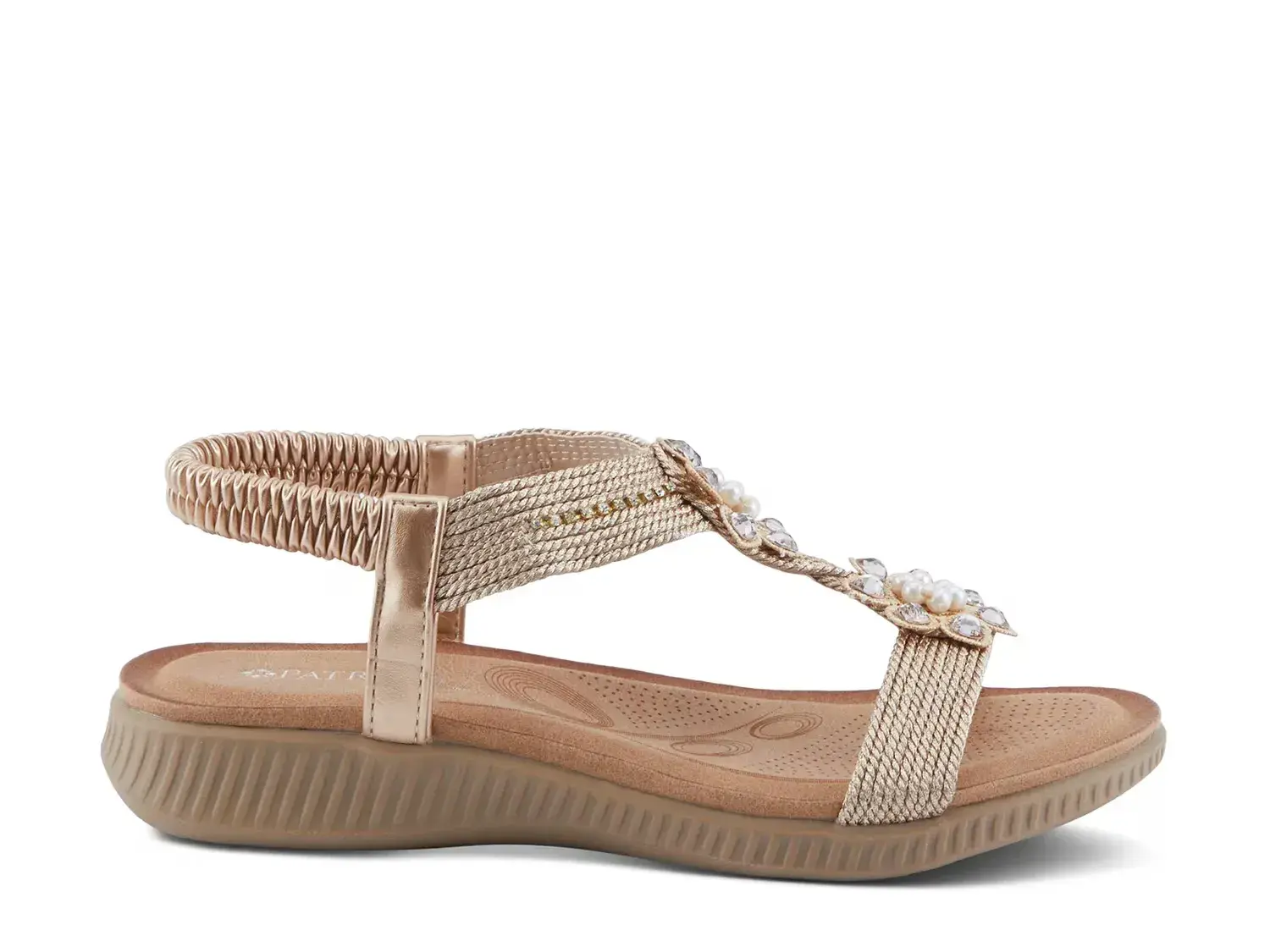 Выходите с элегантностью в сандалиях Patrizia Shikoba. Сандалии с T-образным ремешком украшены очаровательными вышитыми цветами с ринстонами и перламутровыми центрами. Металлический плетеный верх и мягкий кожаный ремешок на щиколотке предлагают стиль и удобство. Спортивная подошва и амортизирующая стелька обеспечивают длительный комфорт для любых случаев.