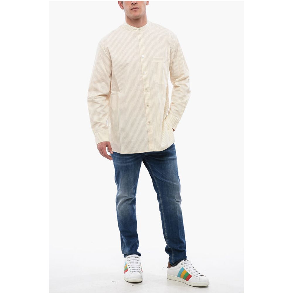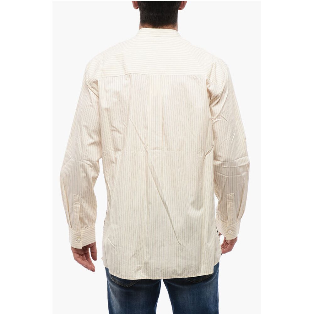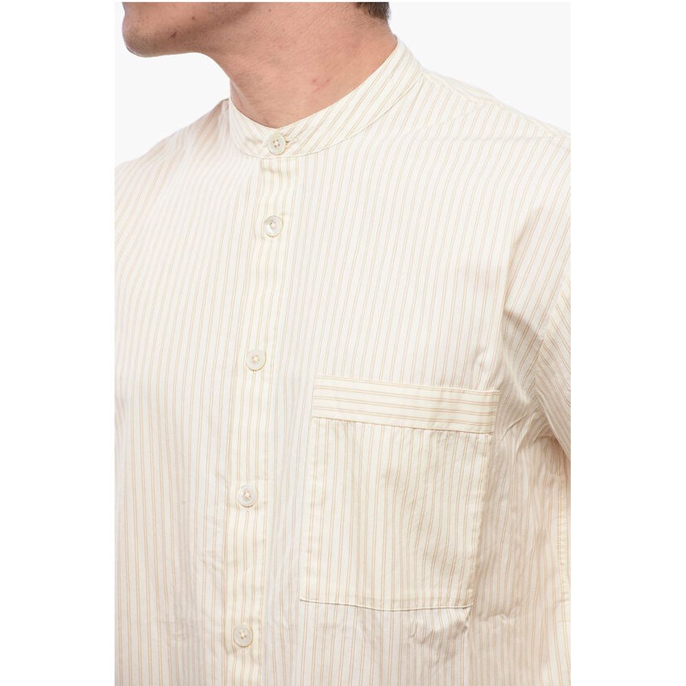 Весна-лето, китайский воротник, бежевый, пуговицы, длинные рукава, полосы, нагрудный карман, рукава на пуговицах, сделано в Португалии, застежка спереди, EARTH NUANCES, P628750