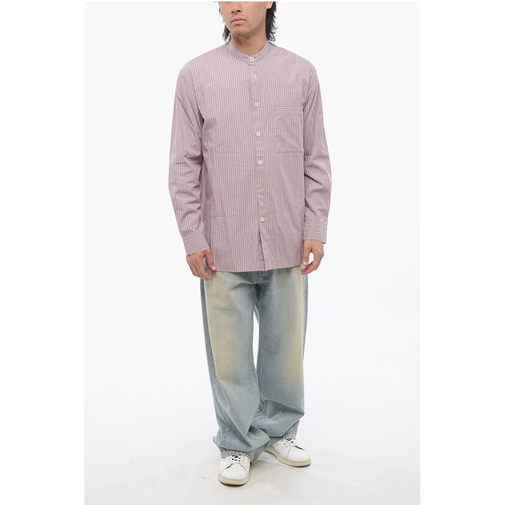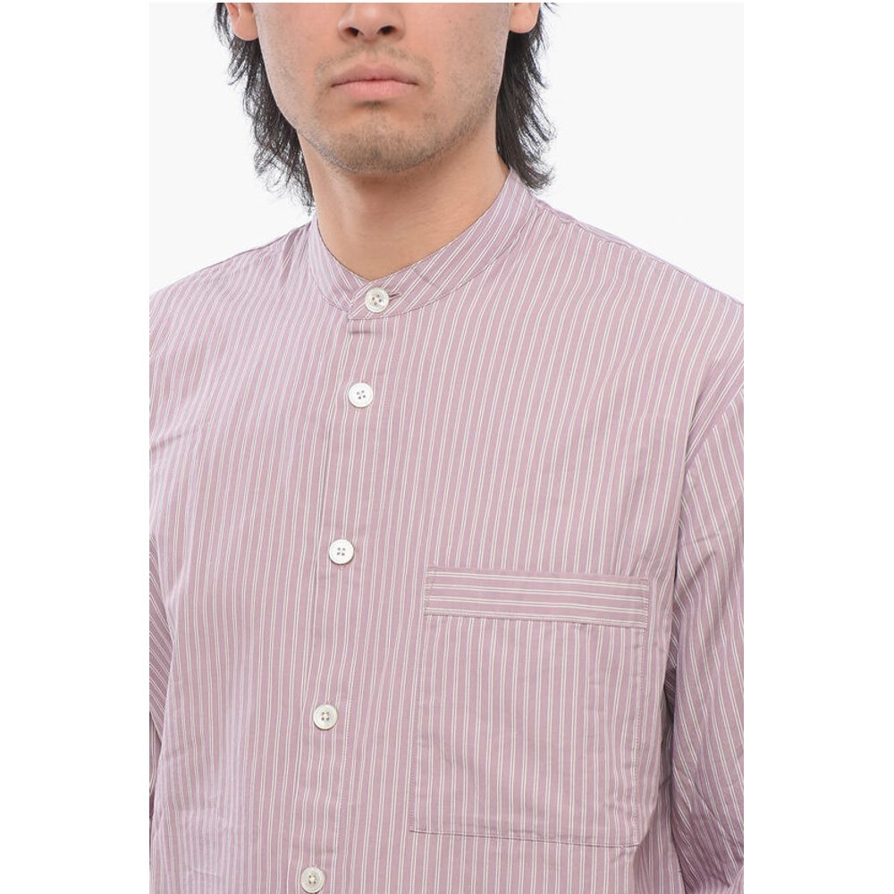 Весна-лето, китайский воротник, фиолетовый, пуговицы, рукава с пуговицами, полосы, длинные рукава, нагрудный карман, застежка спереди, сделано в Португалии, P628748