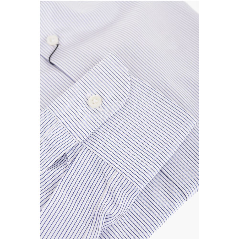 Французский воротник, Пуговицы, Рукава с пуговицами, В тонкую полоску, Длинные рукава, Сделано в Италии, Застежка спереди, Осень-зима, Светло-голубой, СВЯТОЙ ВАЛЕНТИН, P565015